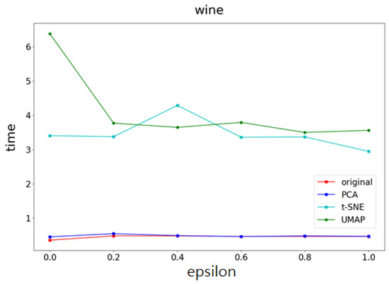 - The computational time of the t-SNE, UMAP, and PCA methods on the same dataset.