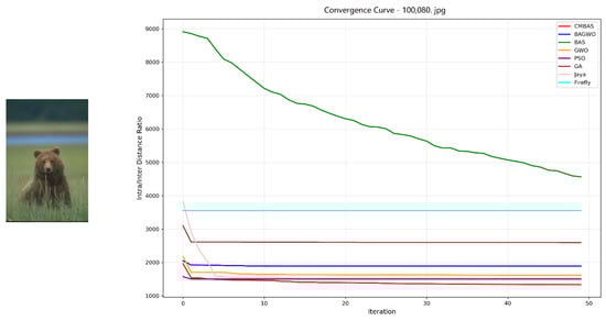 The convergence curves for all eight BSDS images consistently demonstrate the superior convergence performance of CMBAS across diverse image characteristics and complexity levels, as shown in Figure 5, Figure 6, Figure 7, Figure 8, Figure 9, Figure 10, Figure 11 and Figure 12.