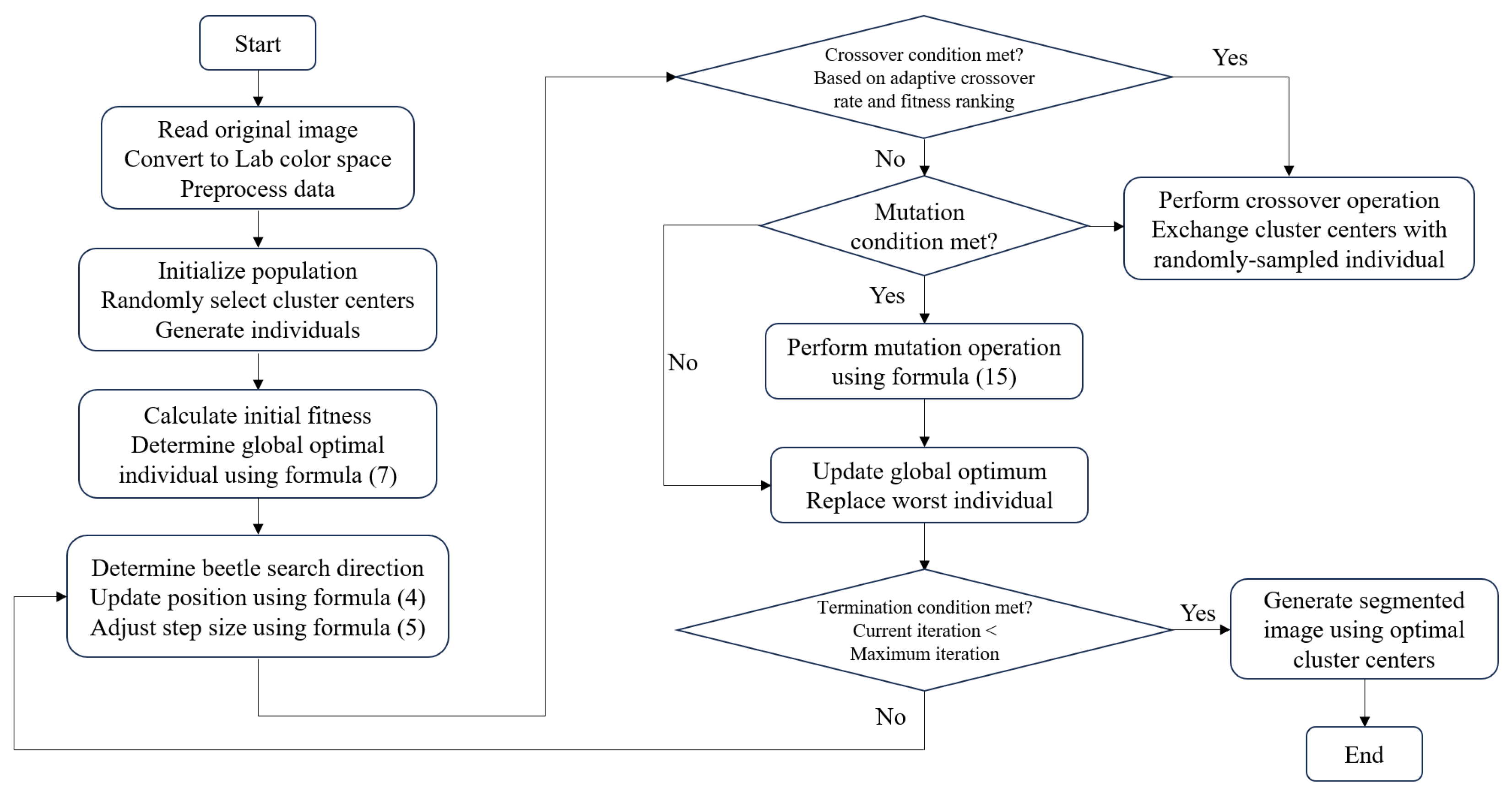 - Xiang, C.; Wang, C.; Zhang, X. Research on image segmentation algorithm based on adaptive beetle antennae search optimization algorithm and K-means clustering. Manuf. Technol. Mach. Tool 2020, 99–101. [Google Scholar] [CrossRef]