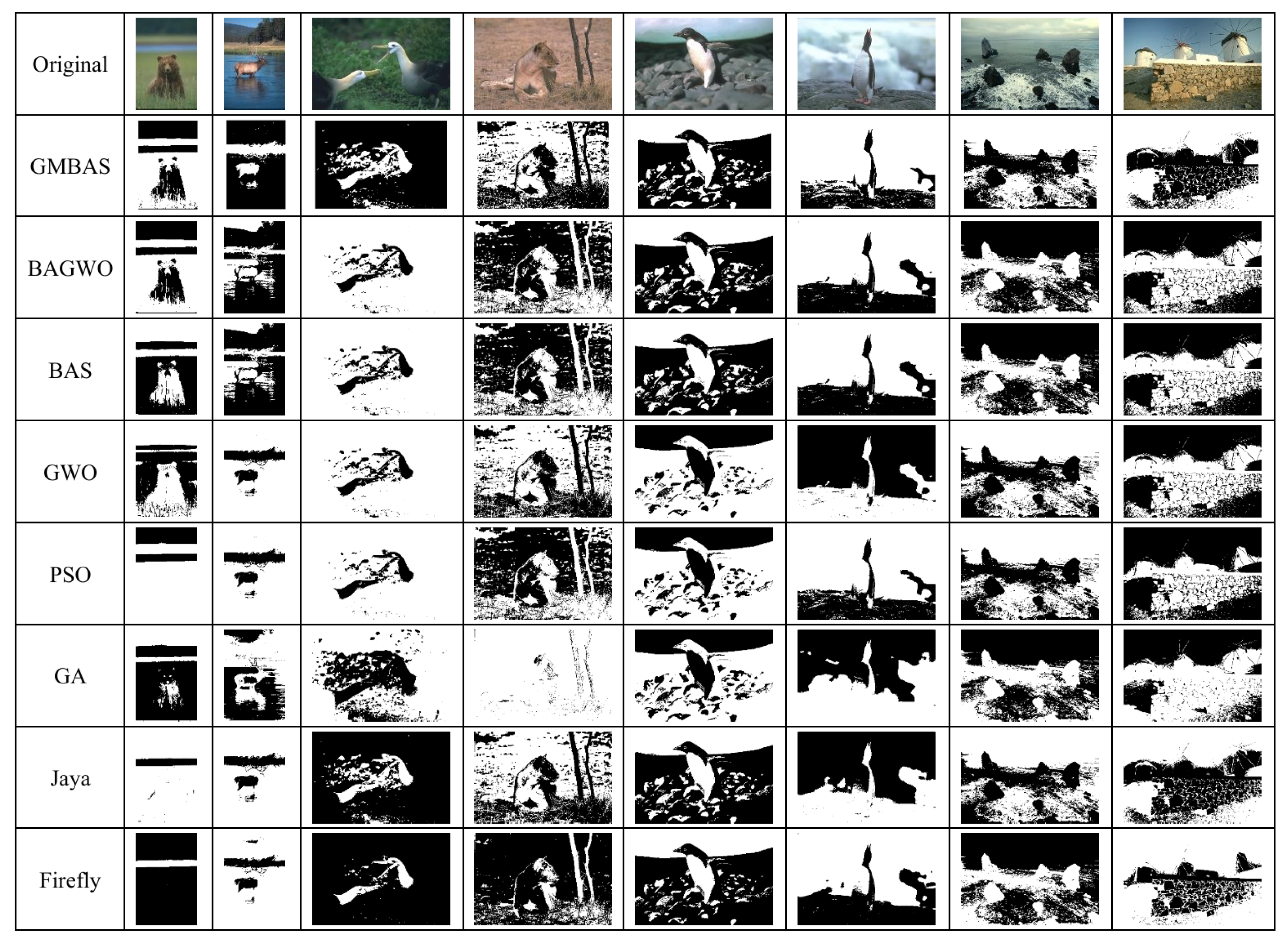 - Li, T.; Hou, H. Image segmentation based on beetle antennae search optimization algorithm. Comput. Prod. Circ. 2019, 158–159. [Google Scholar] [CrossRef]