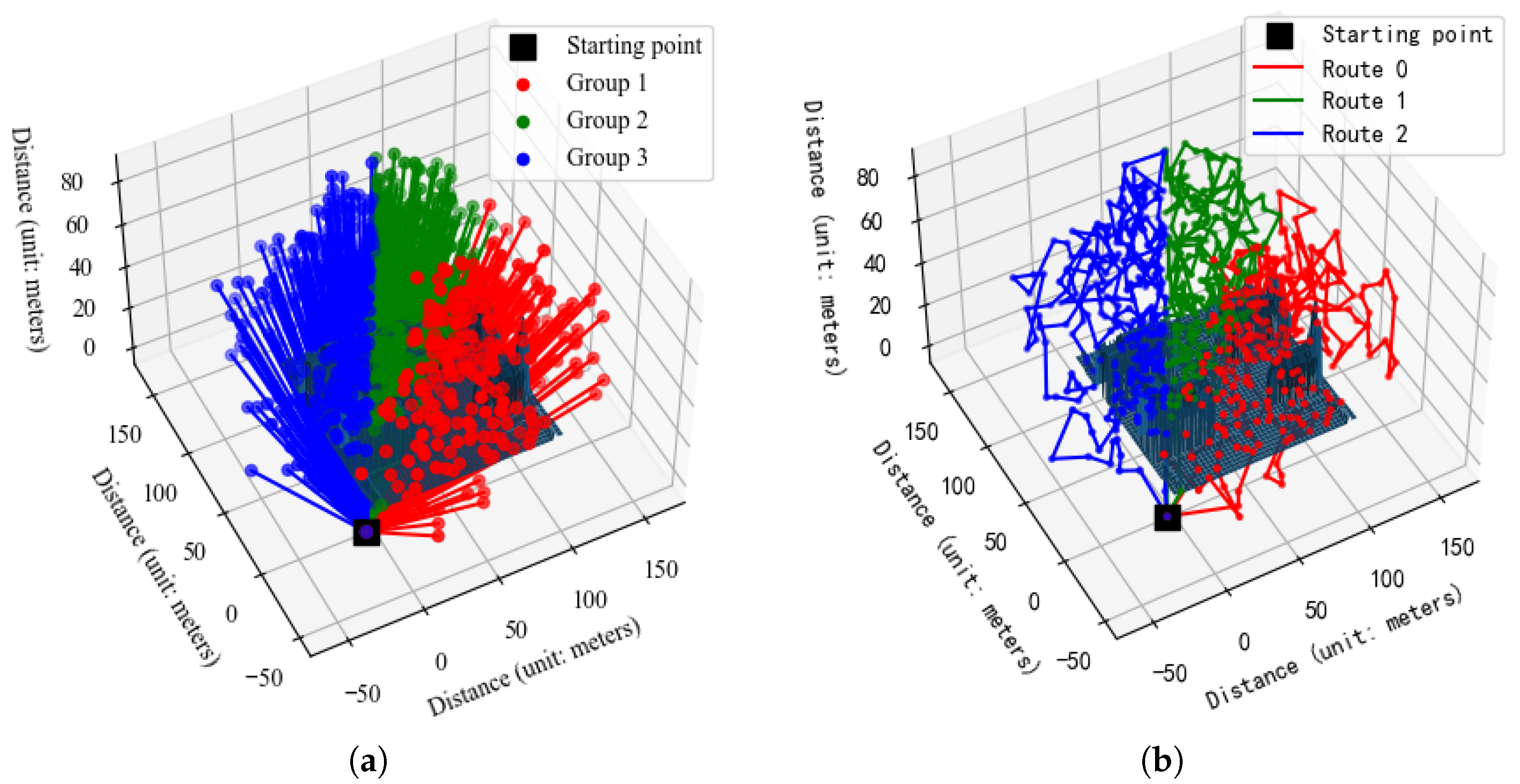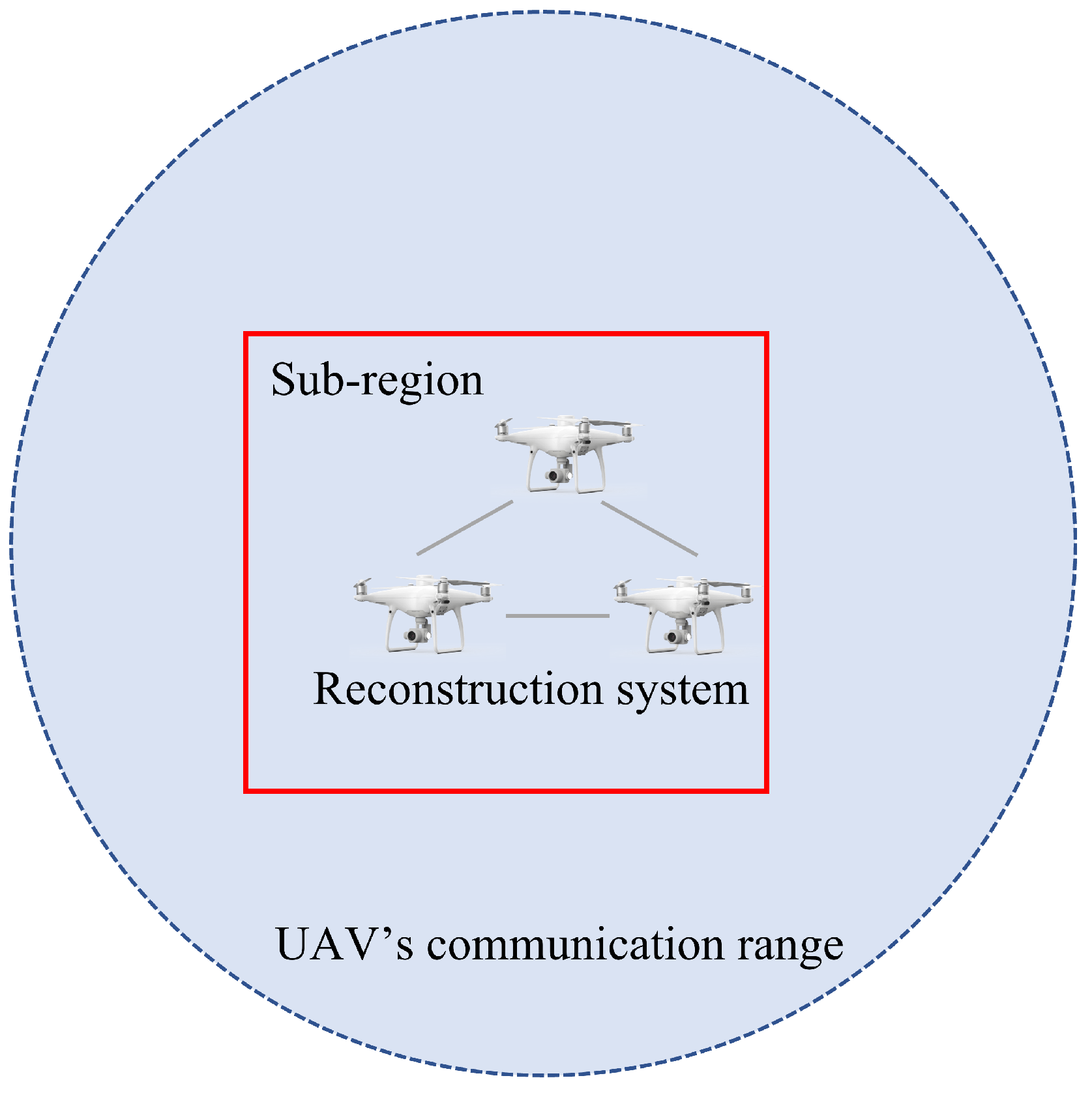 After the target area is divided into sub-regions, the large-scale reconstruction sensing task is transformed into several sub-region sensing tasks. Given the limited battery capacity and the time required for UAVs to collect images, a single mission can only cover a limited area. Consequently, a multi-UAV system may not complete the reconstruction of all sub-regions in one go. To address this, sub-regions are clustered into groups before traversal, and each cluster is reconstructed within a single work path.