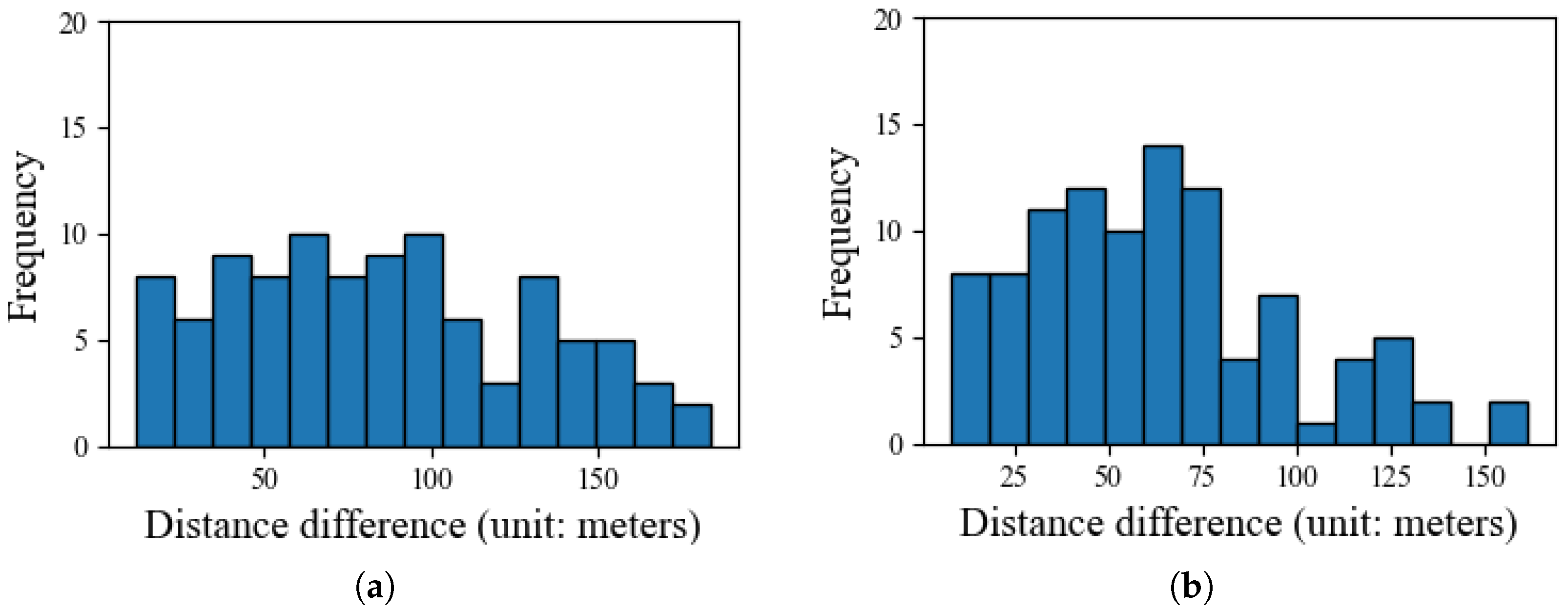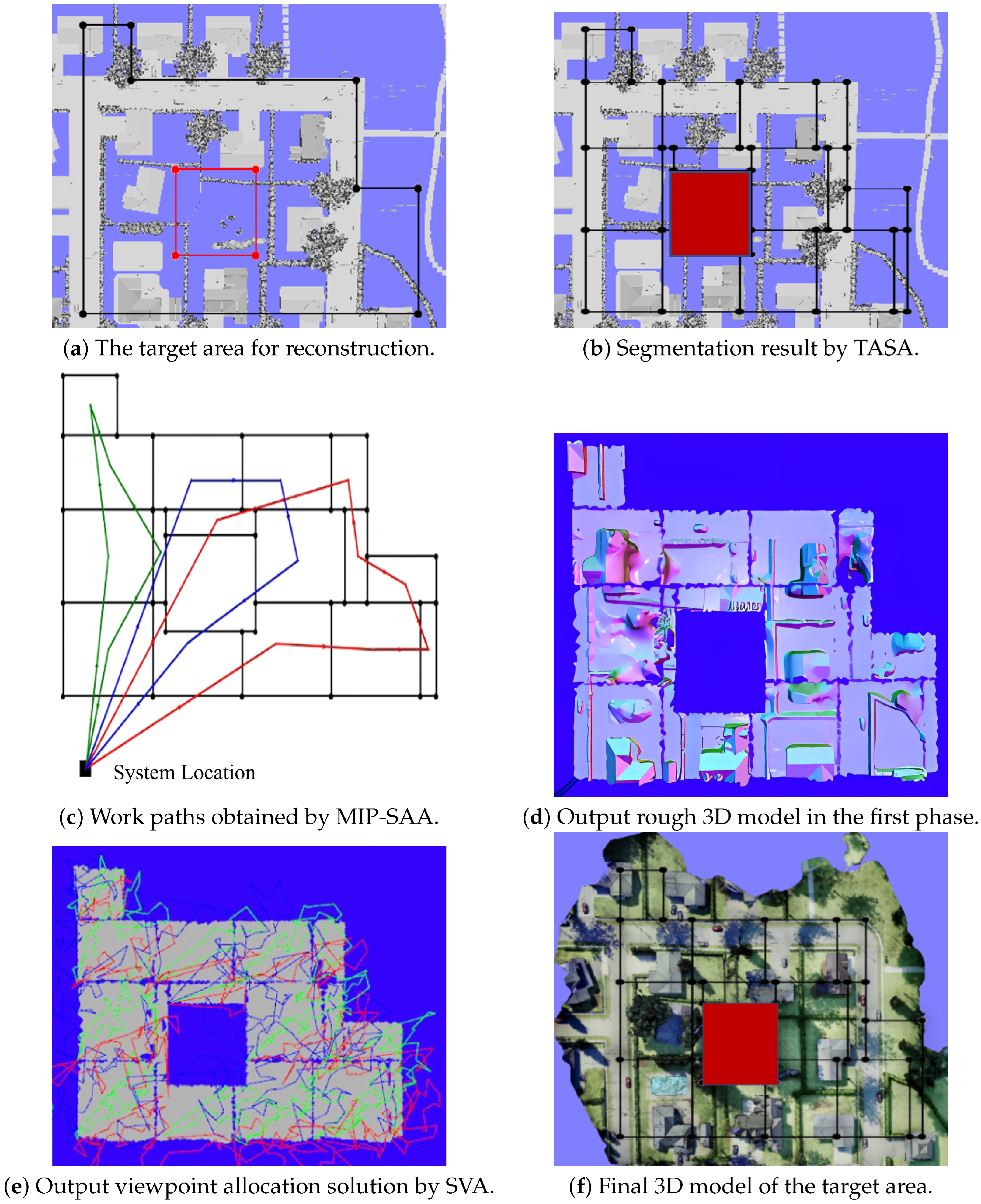 Computational Complexity: The SVA method is designed for efficiency. The initial sorting of n viewpoints takes . The subsequent path planning for k UAVs is dominated by the Christofides algorithm, which has a complexity of for a group of size m. Since the viewpoints are distributed among k groups, the overall time complexity of Algorithm 6 is polynomial, approximately , which is far more time-efficient than the exponential complexity of the MIP-based Algorithm 4. This makes SVA suitable for practical, large-scale applications where planning time is a critical factor.