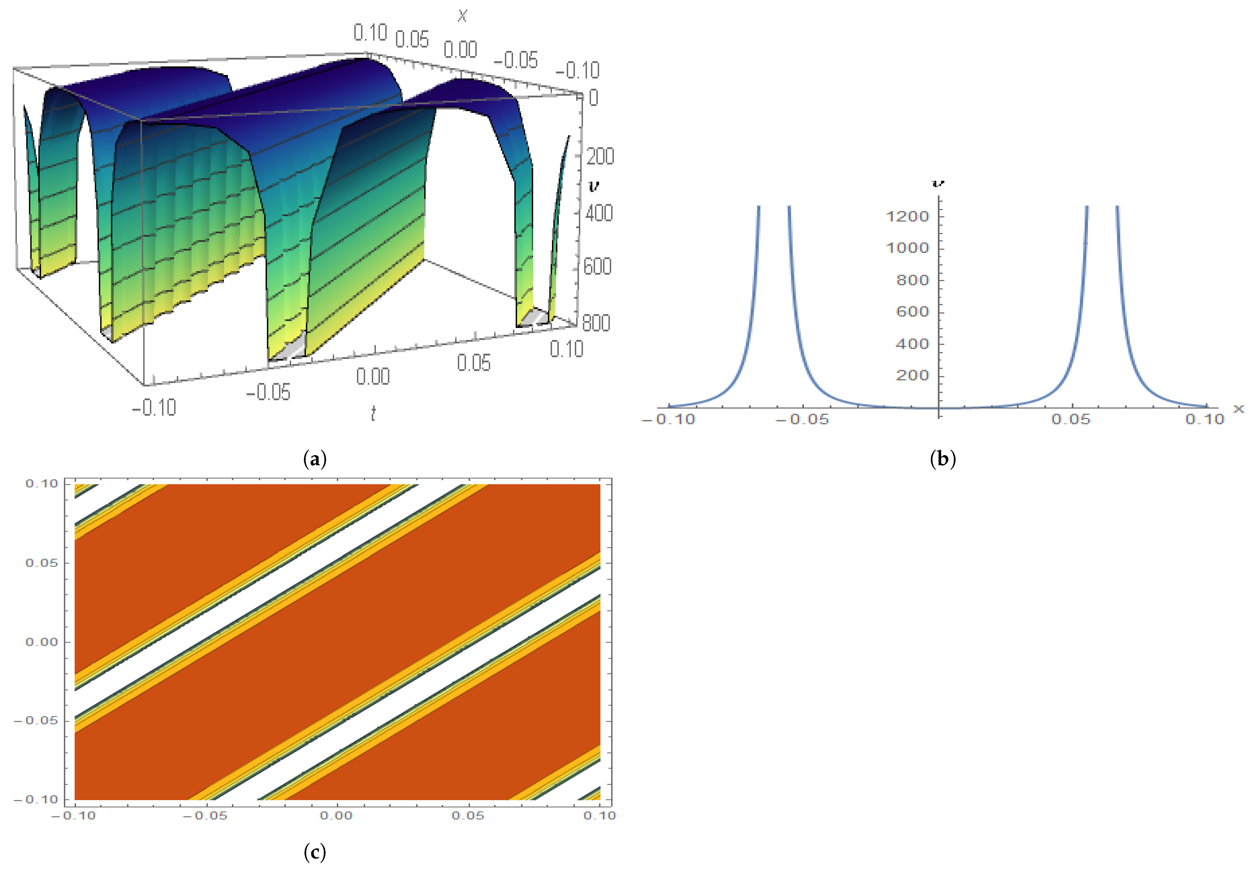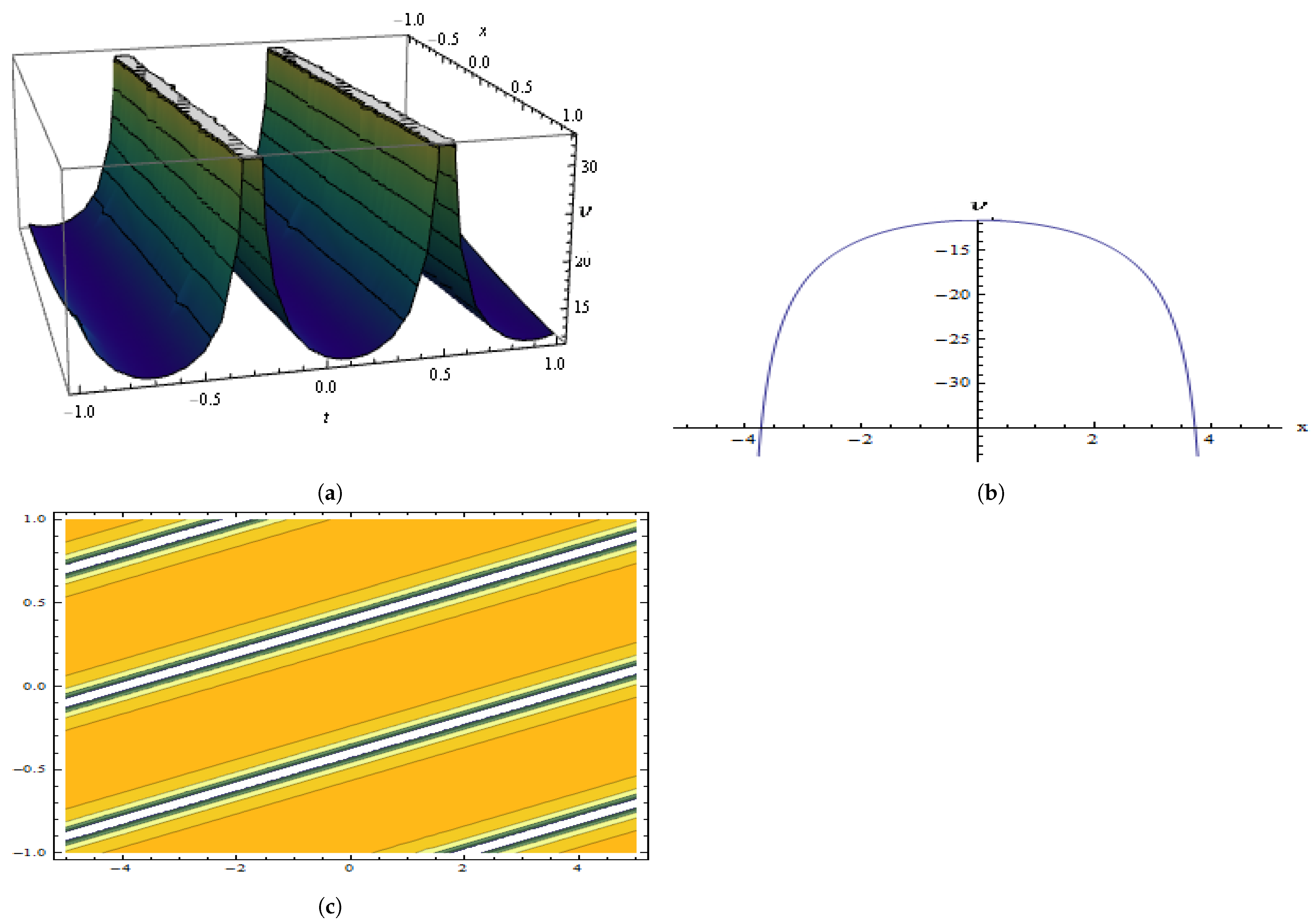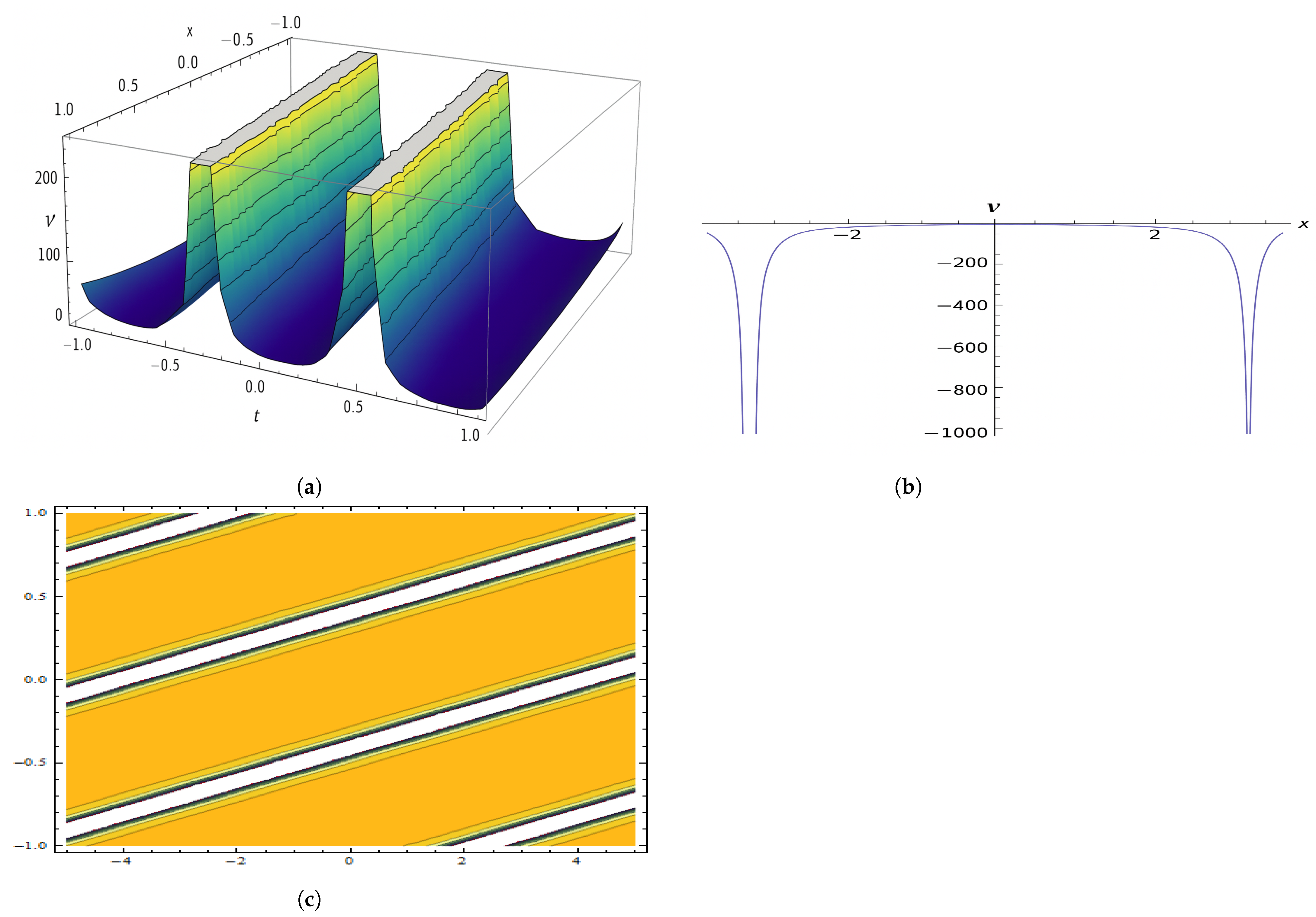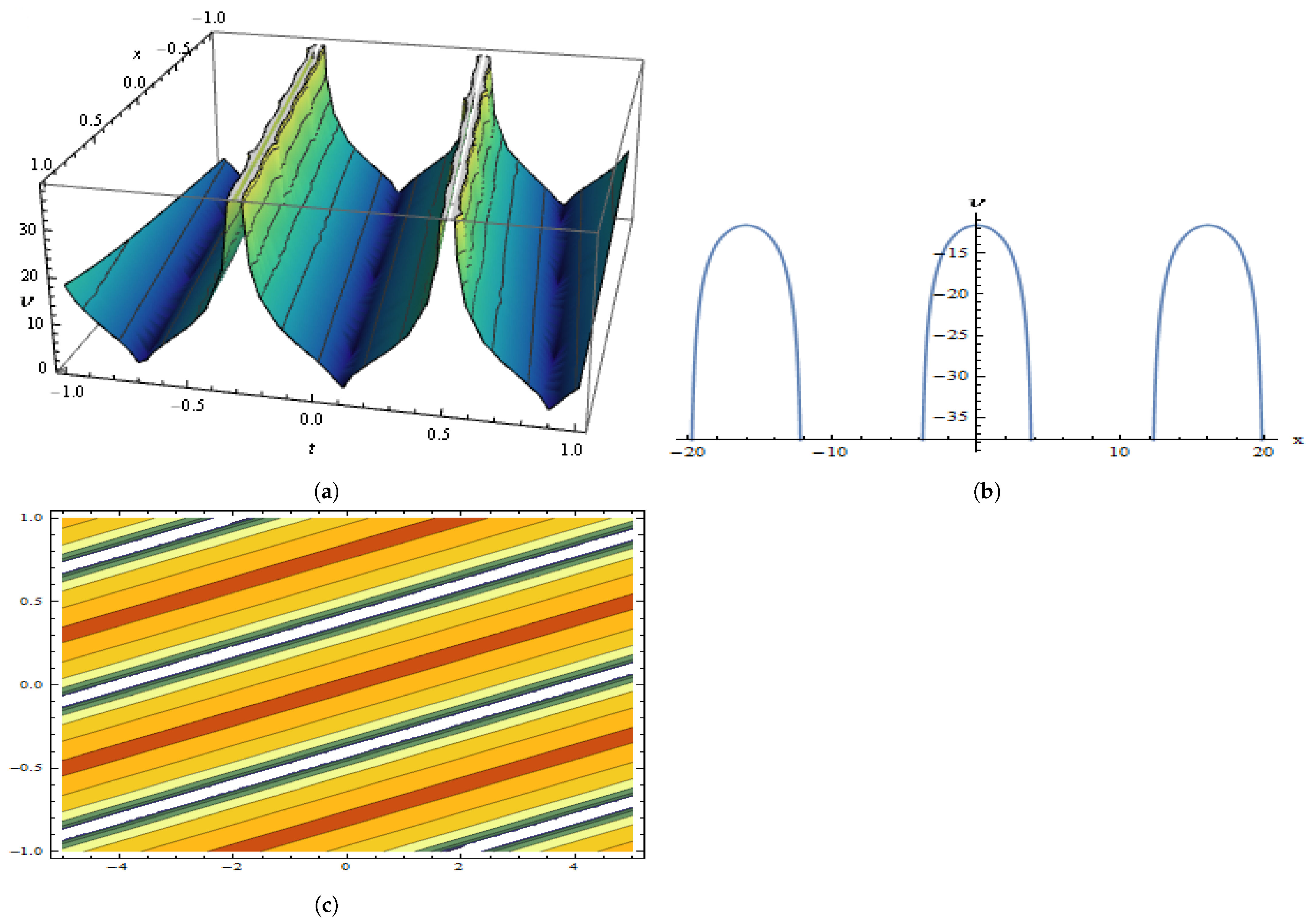 | Present work (this paper) | Sub-ODE architectonics with explicit algebraic constraints | Unified generation and symmetry classification of closed-form DGH waves—bell, hyperbolic (), Jacobi-/Weierstrass-elliptic, periodic, and rational; bright/dark as limits; explicit parameter regimes with 2D/3D/contour illustrations. |