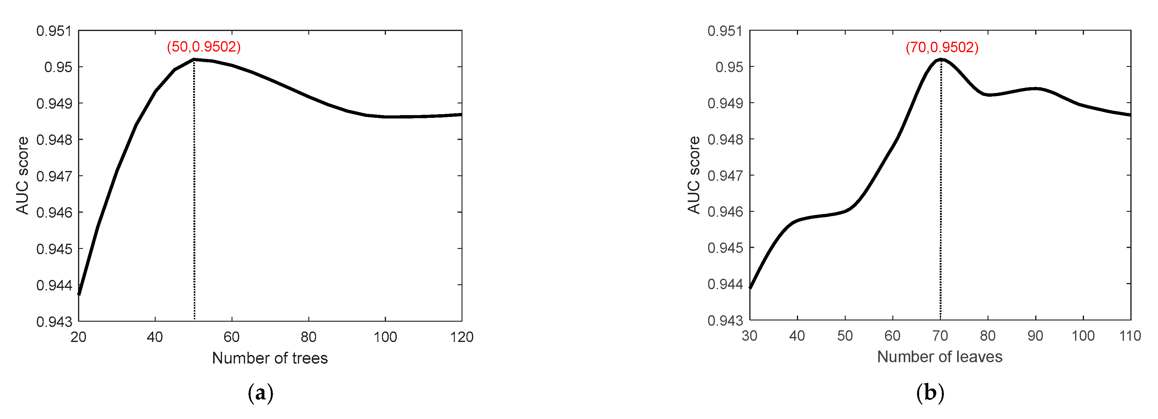 - Ke, G.; Meng, Q.; Finley, T.; Wang, T.; Chen, W.; Ma, W.; Ye, Q.; Liu, T.-Y. Lightgbm: A Highly Efficient Gradient Boosting Decision Tree. Adv. Neural Inf. Process. Syst. 2017, 30, 3149–3157. [Google Scholar]