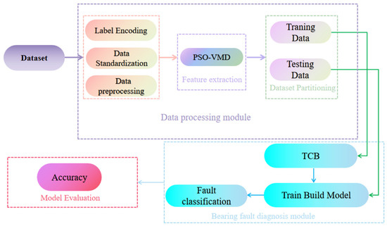 This paper presents a bearing fault diagnosis approach that couples PSO-VMD feature extraction with a TCB model. The main conclusions are as follows: