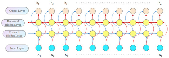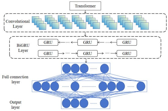 As shown in Figure 7, the input layer receives the input data, which is simultaneously fed into both forward and backward hidden layers. In other words, the data flows through two GRU networks in opposite directions. The final output sequence is determined jointly by the outputs of both GRU units.