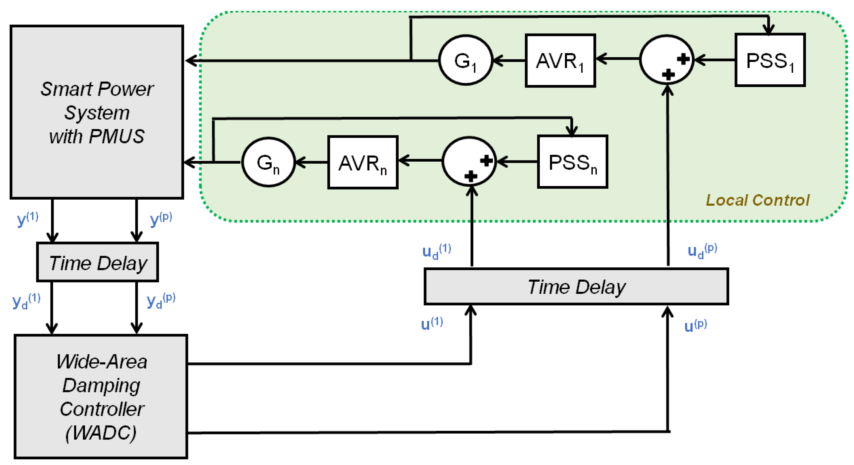 WADC operates with remote signals from PMUs, and thus time delays were also applied in the formulation and are given by the following second-order Pade approximation [55]