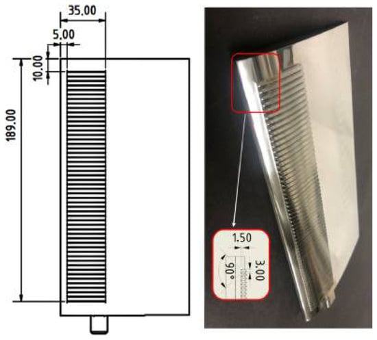 Schematic view of mesoscale bio-inspired riblets which are employed on the suction side of a hydrofoil adjacent to the leading edge as a passive control method. Adapted from Ref. [40].