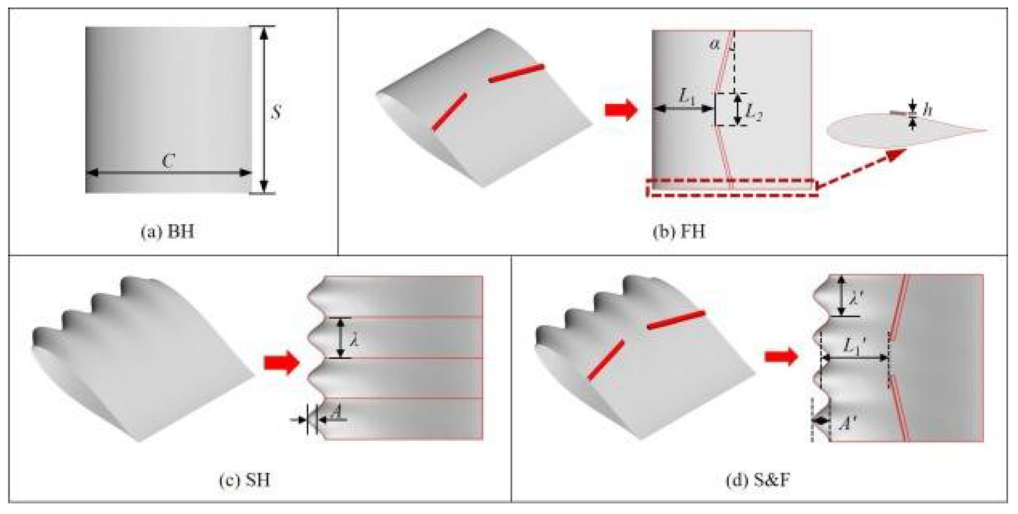 | Chen et al. (2020) [53] | Experiment | Leading edge roughness | Regulate the appearance of incipient cavitation and postpone the angle at which the highest lift-to-drag ratio occurs. |
