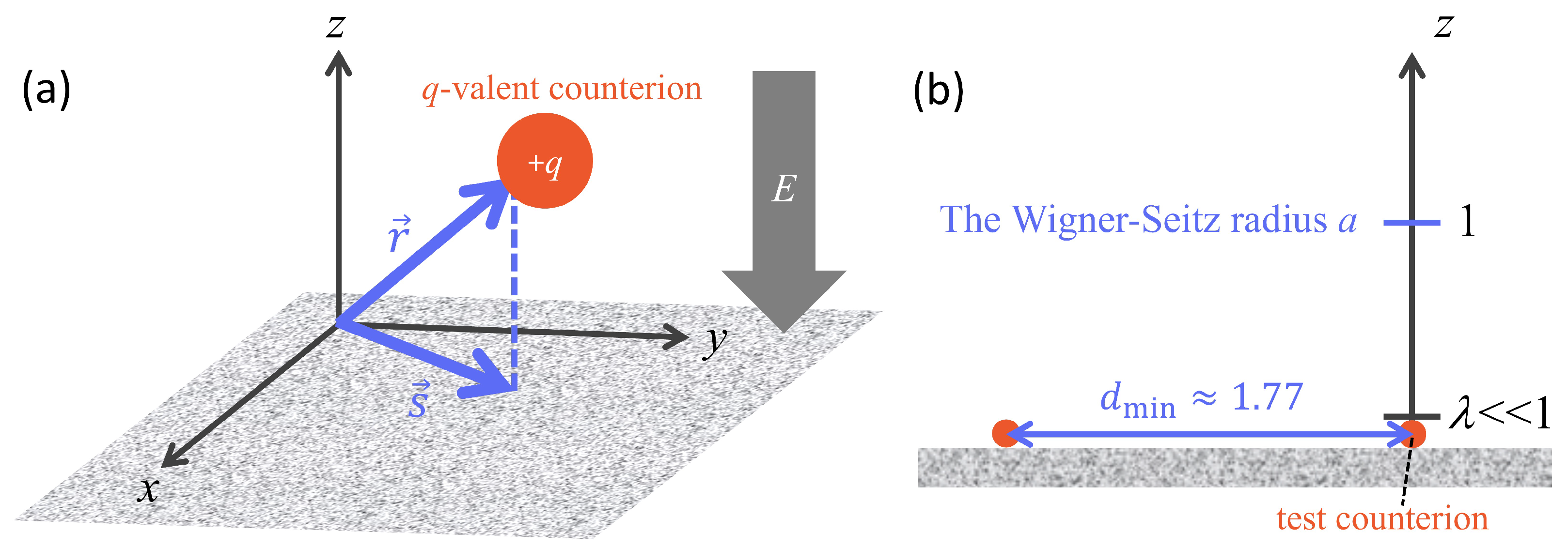 - When the attractive force from the external electric field pulling the counterions toward the plate is sufficiently larger than the repulsive force from an adjacent counterion.