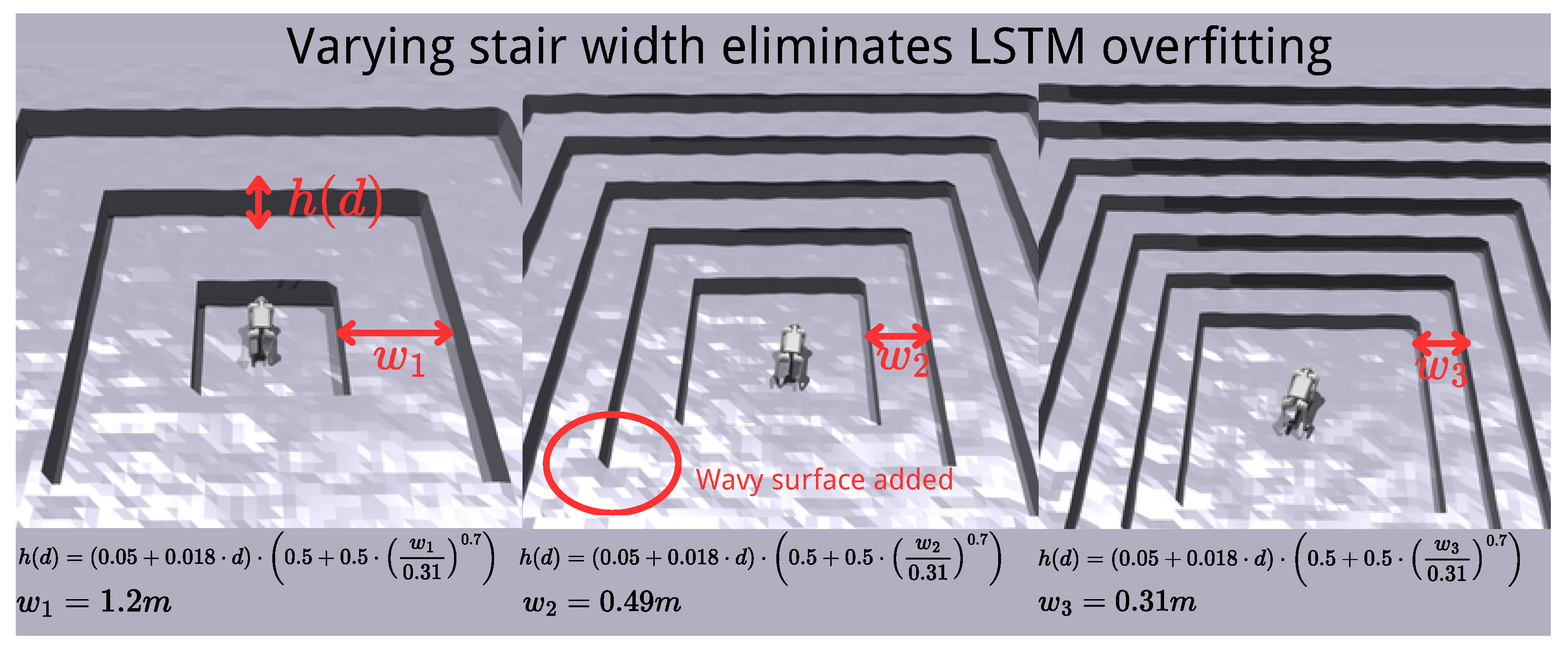 Figure 12, the proposed method demonstrates enhanced robustness in simulation, successfully navigating step heights up to 35 cm.