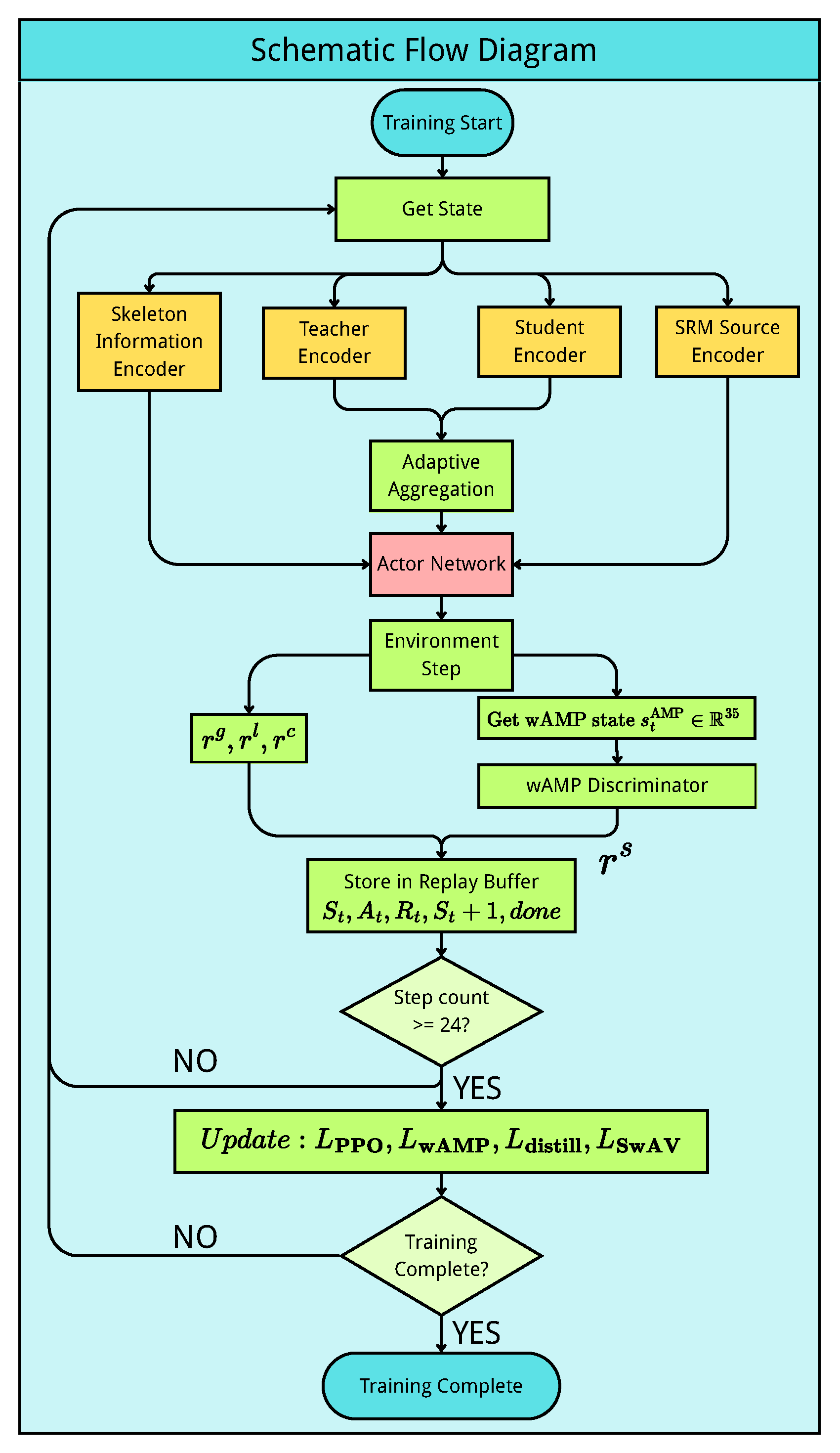 Figure 6 illustrates the complete training workflow of our framework. The training process follows a standard reinforcement learning loop with multiple specialized components working together.