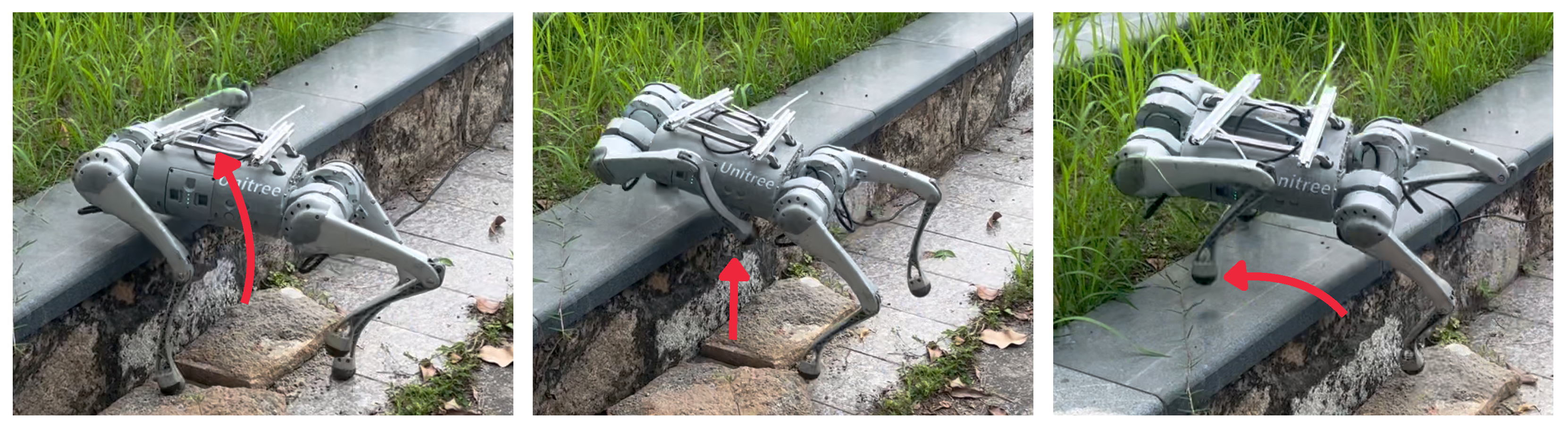 39]. These design choices position our framework for broader application beyond the GO1 platform, though comprehensive validation across multiple robots and sensing modalities remains important future work.