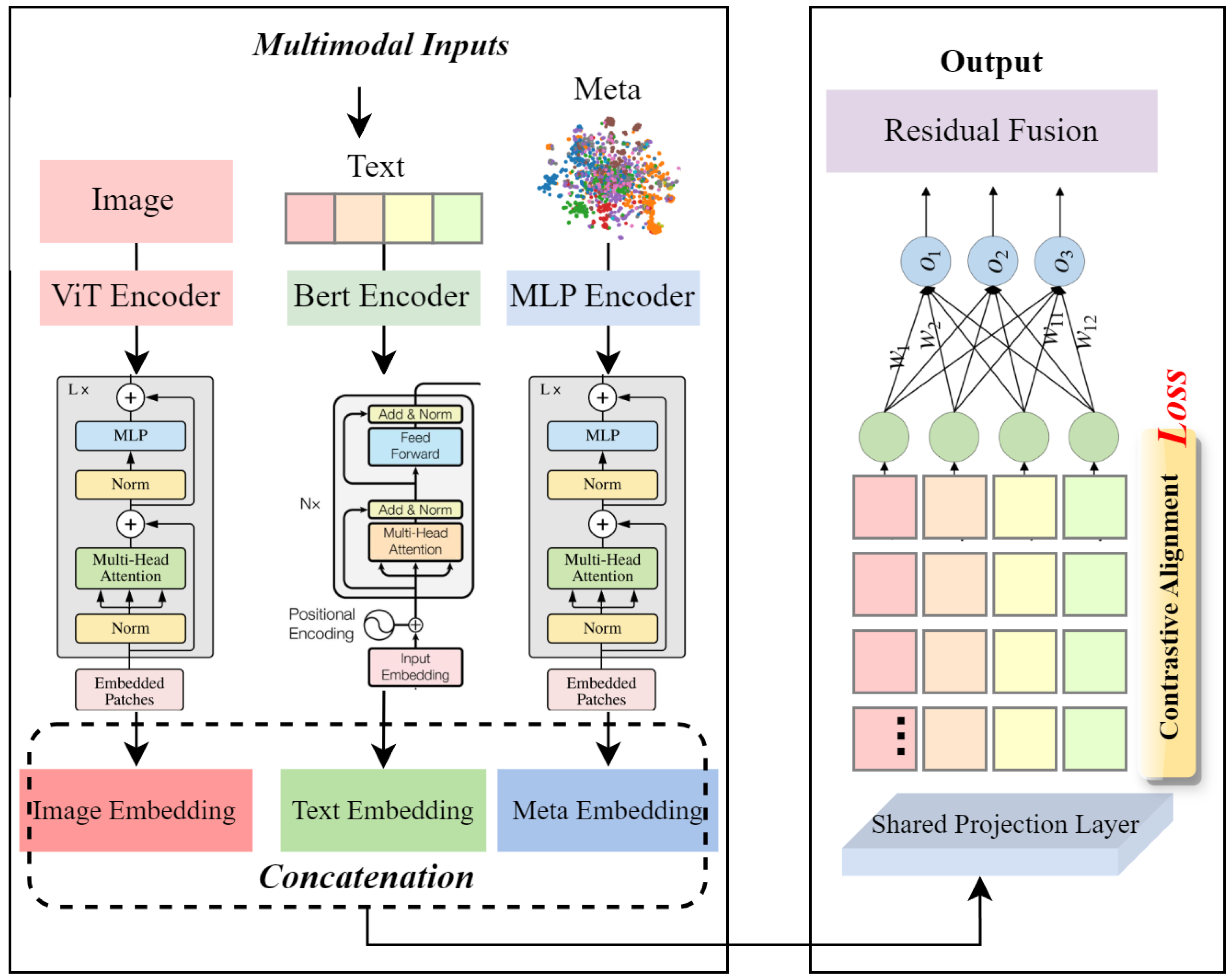 Figure 2, which integrates multimodal event information into temporal embeddings via contrastive alignment and residual fusion. This ensures that only relevant multimodal signals contribute to forecasting, improving robustness and interpretability.