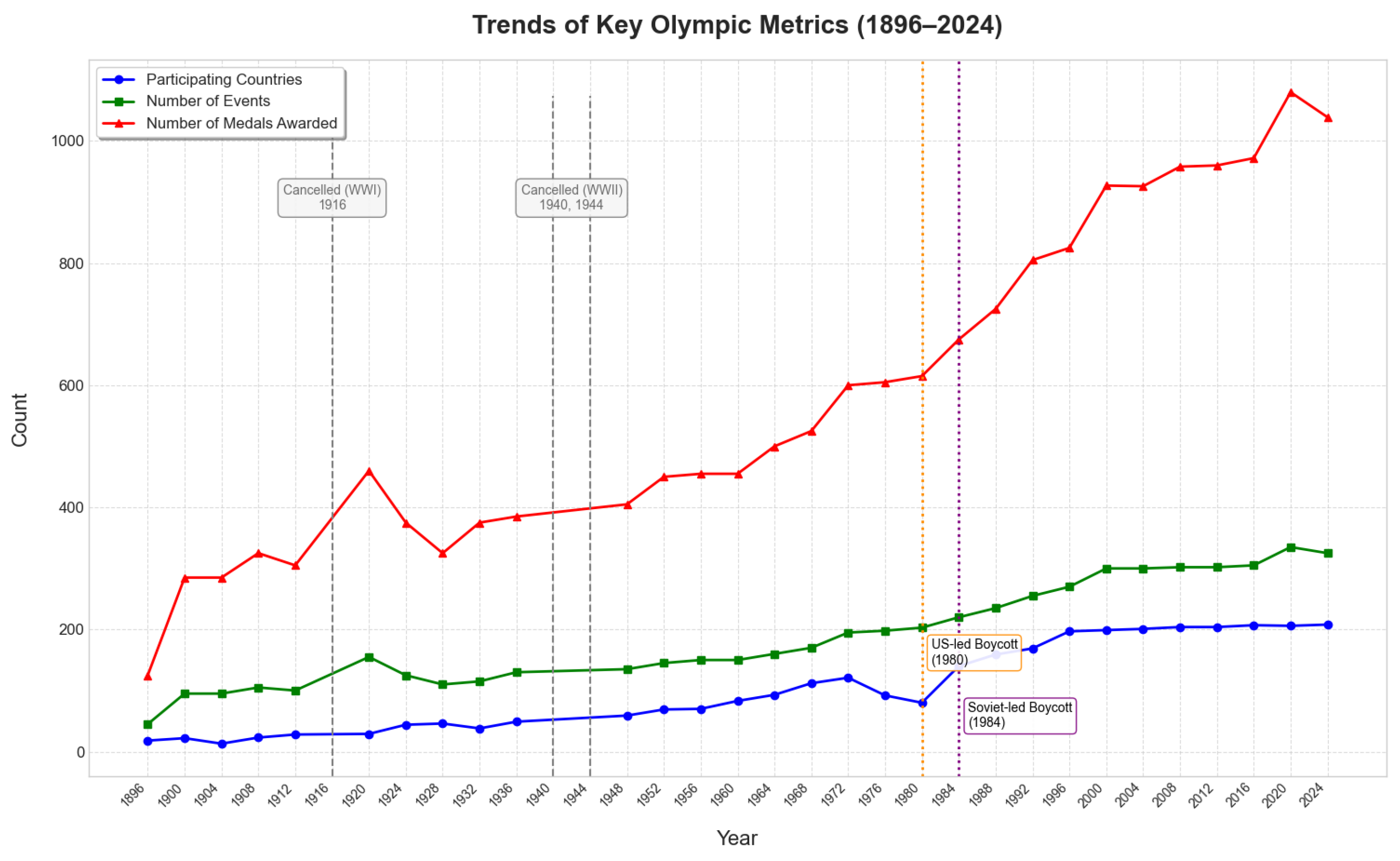 We divide a country’s Olympic development into three stages, the initial stage, growth stage, and mature stage, and extract specific feature patterns for each stage: