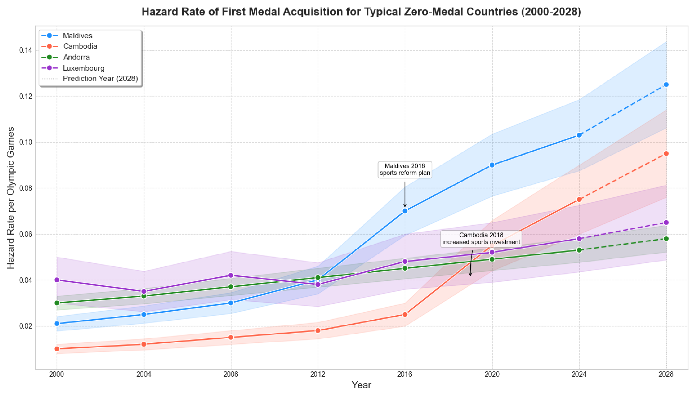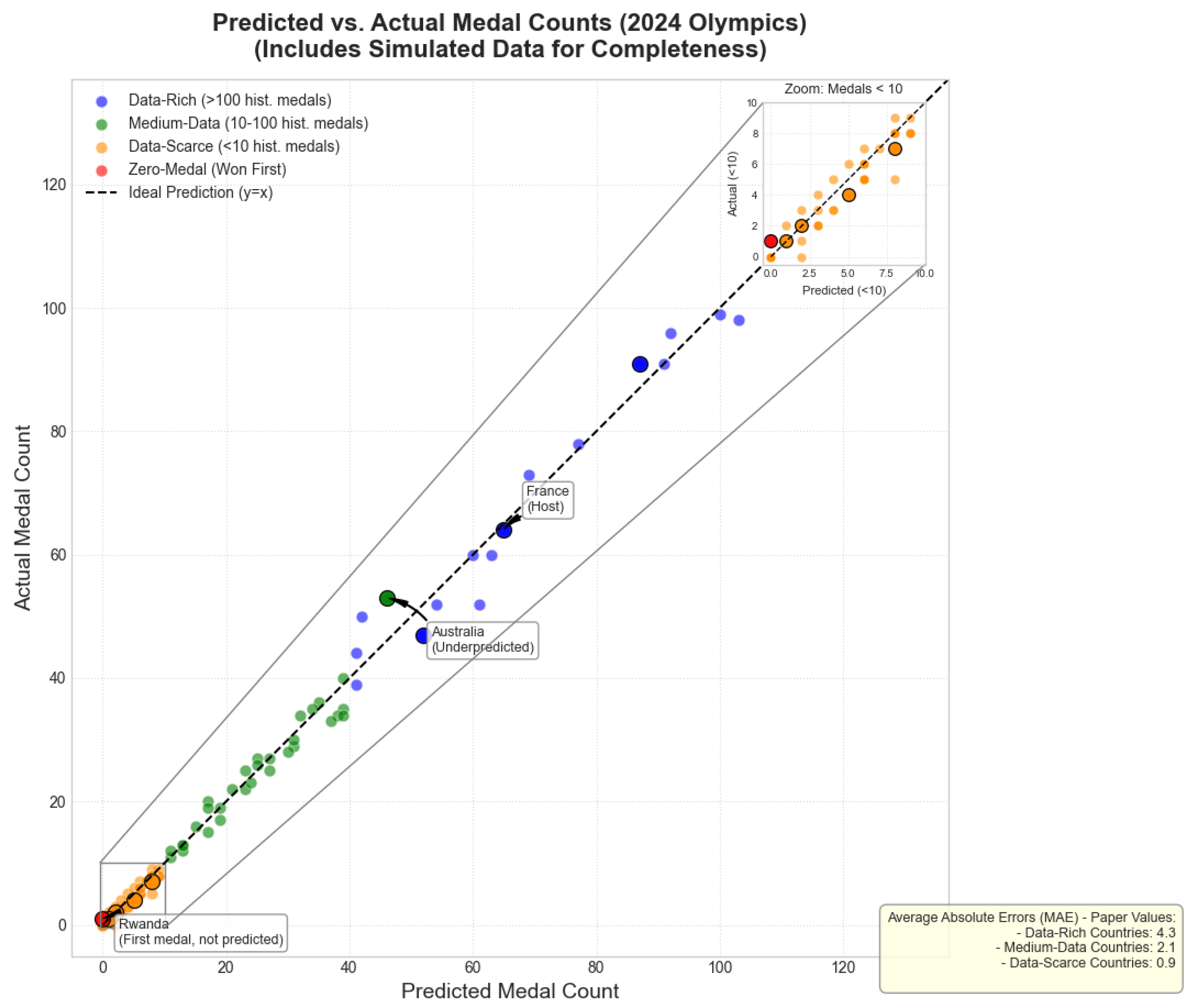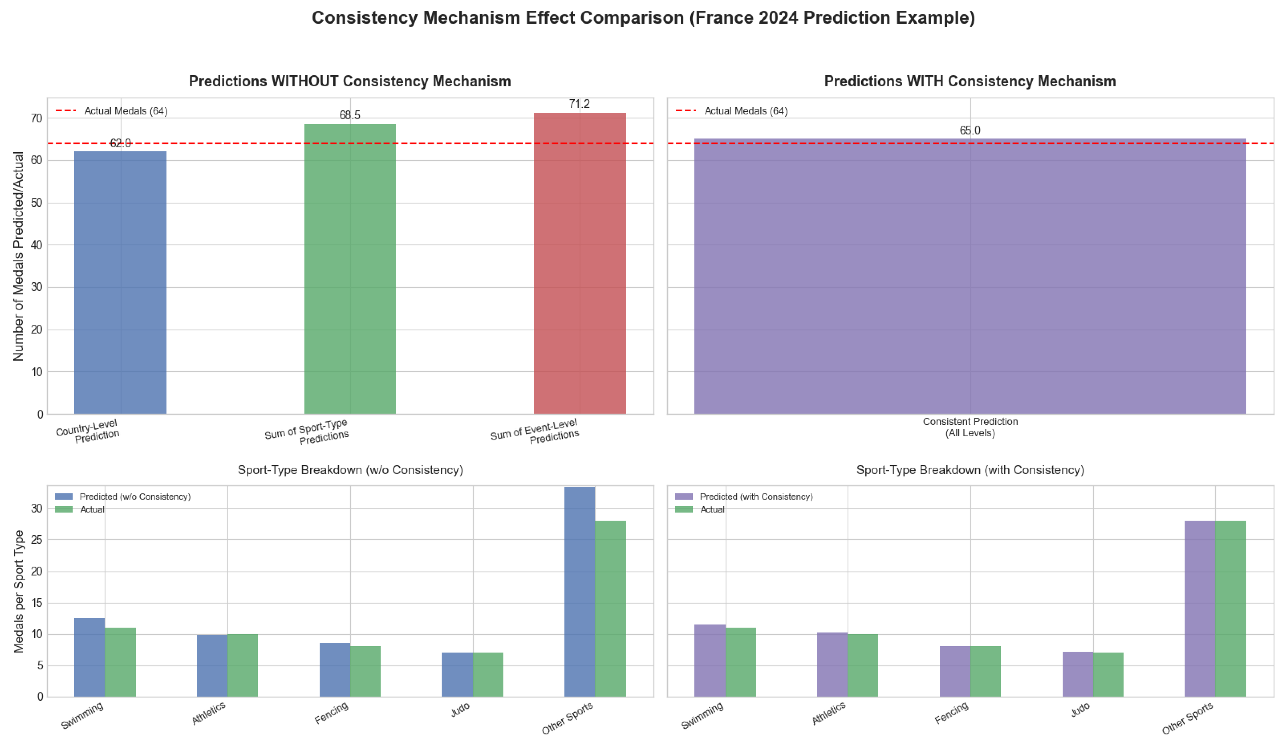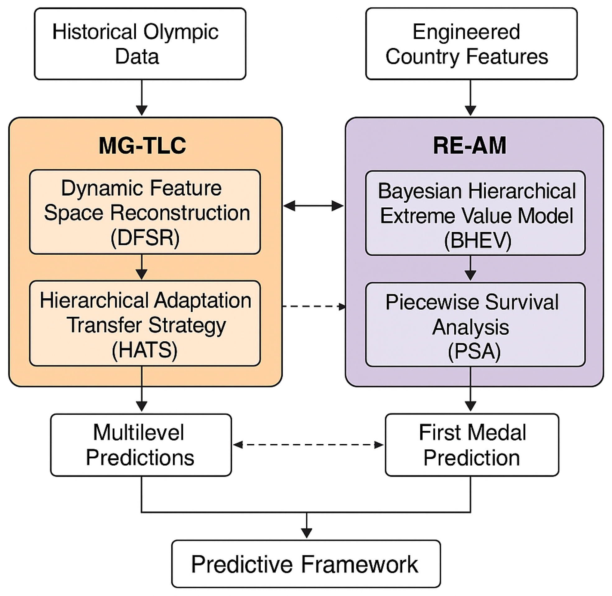 For example, consider Georgia (target domain), whose feature pattern is similar to that of “single-event-specialization-type” countries like Bulgaria and Hungary. The HATS assigns Georgia to this cluster and applies the specific transfer strategy for this type of country. In the 2024 prediction, the source domain base model gave an initial prediction of 6.3 medals, and the cross-domain adjustment model corrected it to 8.1 medals based on historical performance, close to the actual result (seven medals).