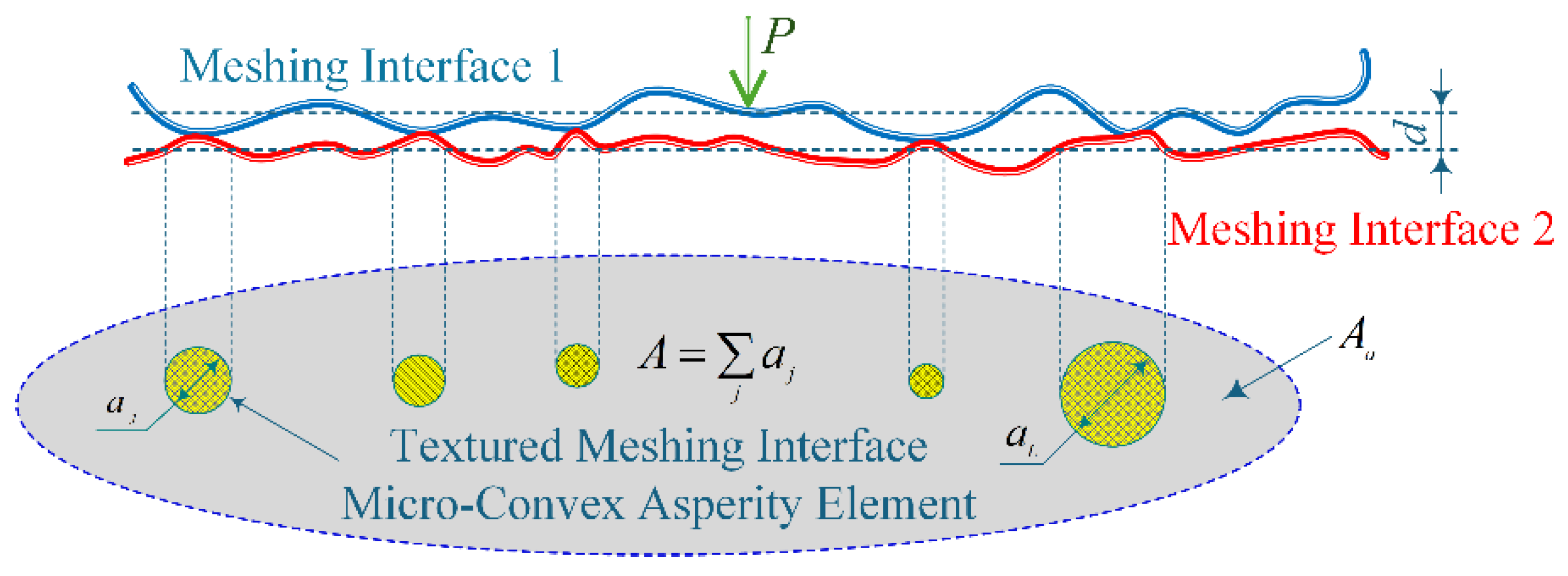 . The microcontact model of the textured meshing interface is simplified as shown in