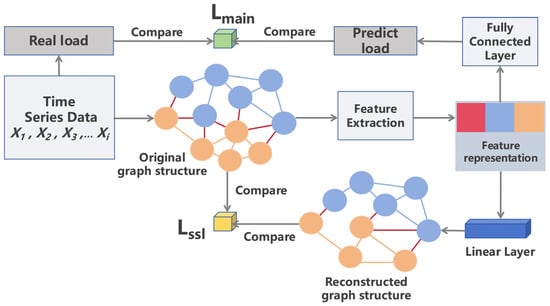 - The three types of graph-level representations are concatenated and fused, outputting the final load prediction result through the multilayer perceptron, which is compared with the actual load through the mean squared error to obtain the fitting main task loss.