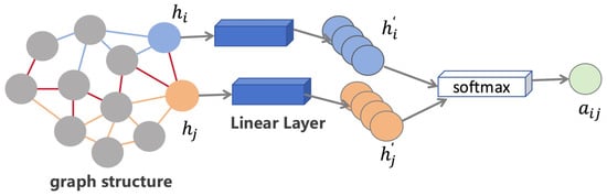 where is a learnable weight vector representing attention mechanism weights; || represents feature concatenation operation; and are features obtained by linear transformation of nodes i and j, respectively. is an activation function that performs better than ReLU in GATs, and it is specifically shown in Equation (16), where is an adjustable parameter corresponding to the activation function.