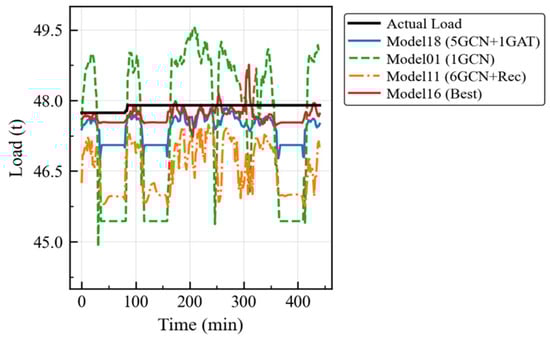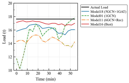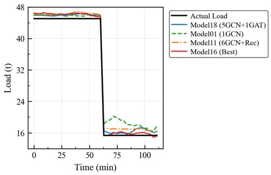 The experimental results demonstrate that the optimized Model 16 maintains fitting errors within 1 t throughout all time periods under the empty-load scenario, and it also maintains similar performance under full-load conditions. Under the load-change scenario, all models can quickly adjust the estimation trends based on dynamic changes in the feature parameters.