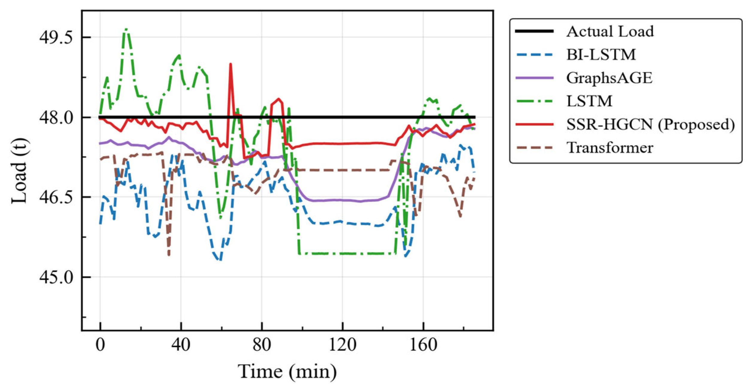 Scalability considerations: Given the generality of the load estimation problem, future research should introduce state-of-the-art pre-trained models like BERT on large-scale datasets to pre-train heterogeneous graph models for improved performance. We also plan to explore multi-task learning frameworks to achieve the joint optimization of load prediction and vehicle state assessment in order to enhance model comprehensive applicability across multiple scenarios.