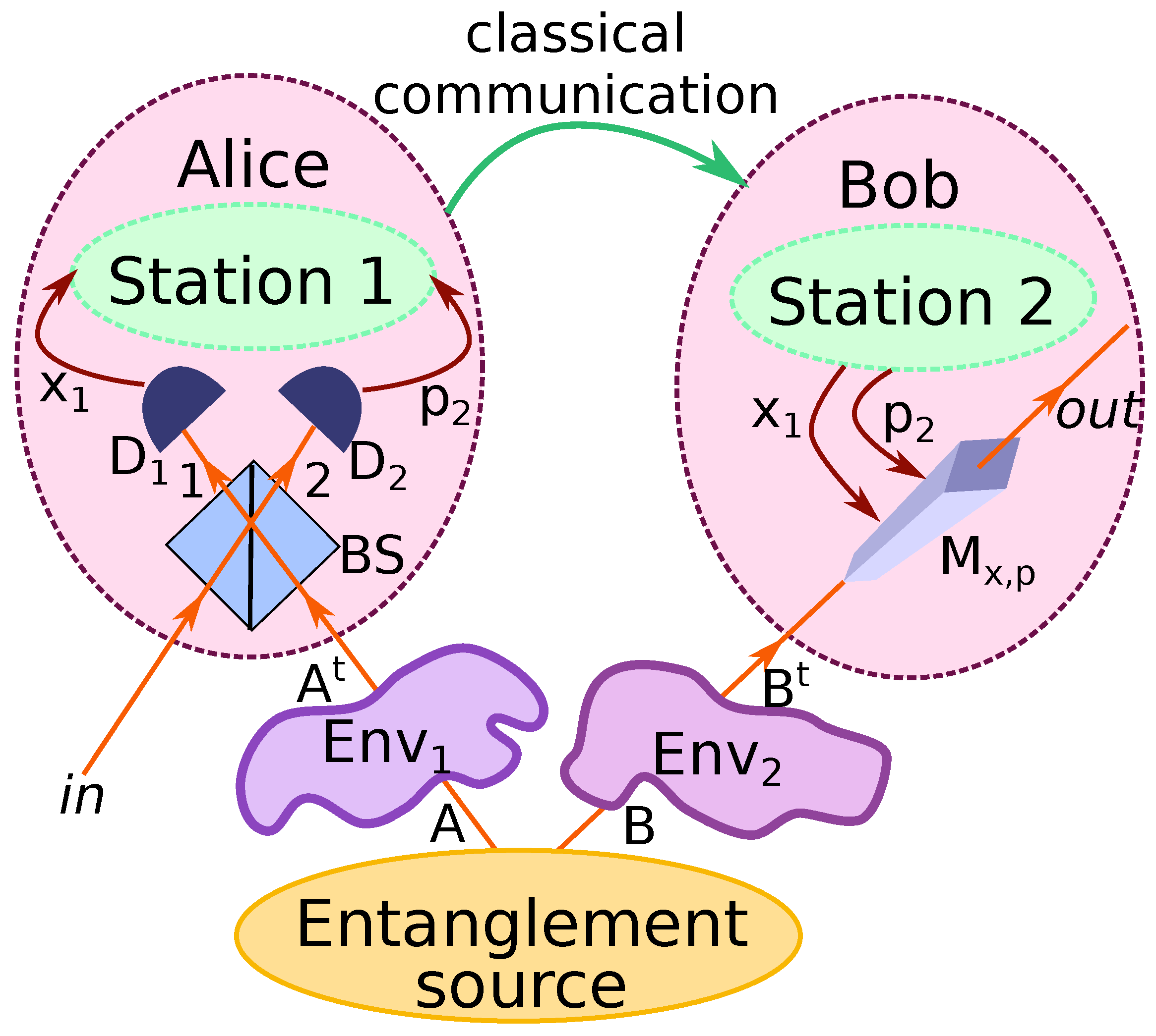 - Mehrabankar, S.; Mahmoudi, P.; Abbasnezhad, F.; Afshar, D.; Isar, A. Effect of noisy environment on secure quantum teleportation of unimodal Gaussian states: S. Mehrabankar et al. Quantum Inf. Process. 2024, 23, 343. [Google Scholar] [CrossRef]