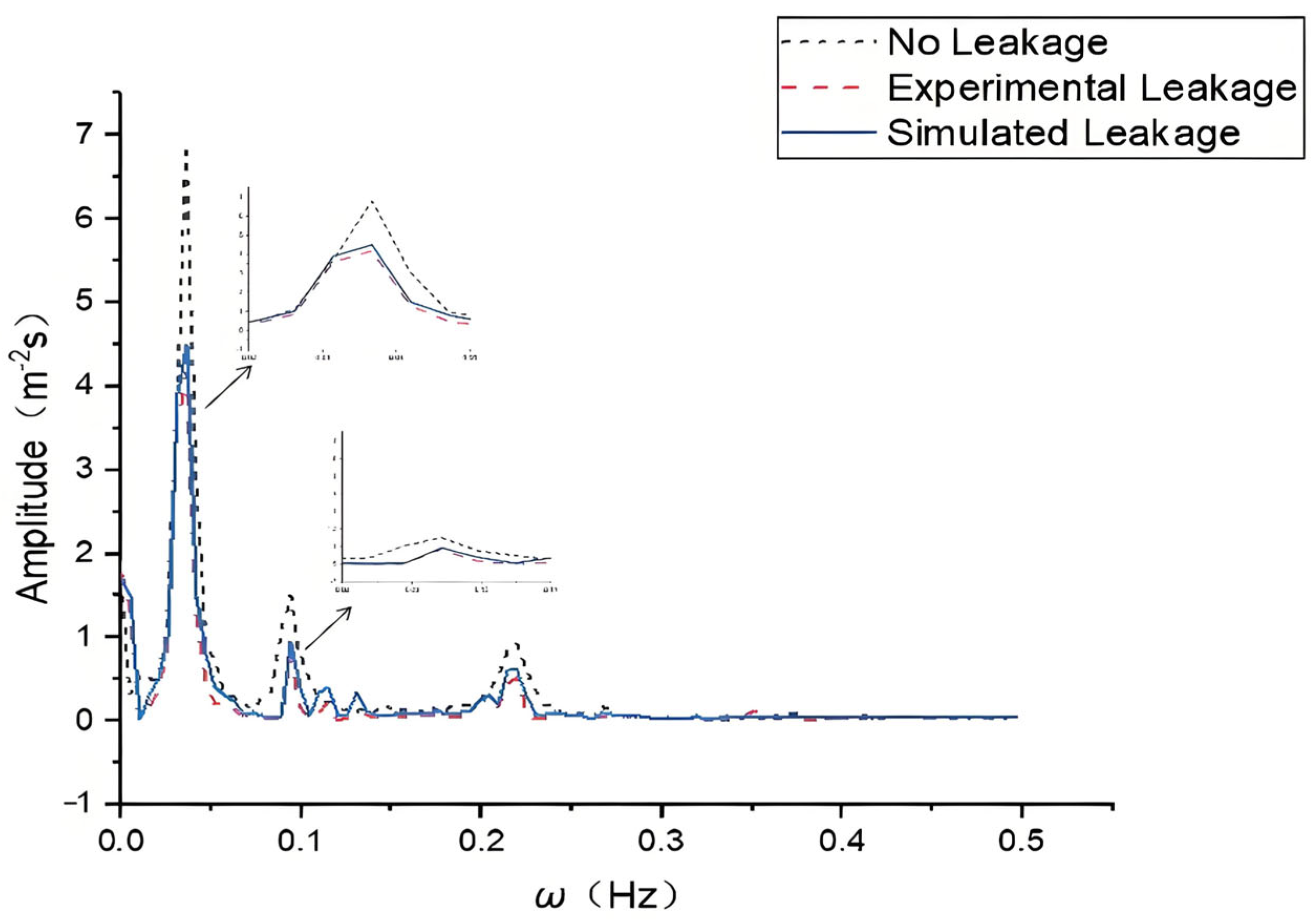Experimental leakage- Simulated leakageR20.968The correlation coefficient is close to 1, indicating that the variation trend of the amplitude in the frequency domain is completely consistent, and the model can accurately reproduce the characteristics of the leakage flow field