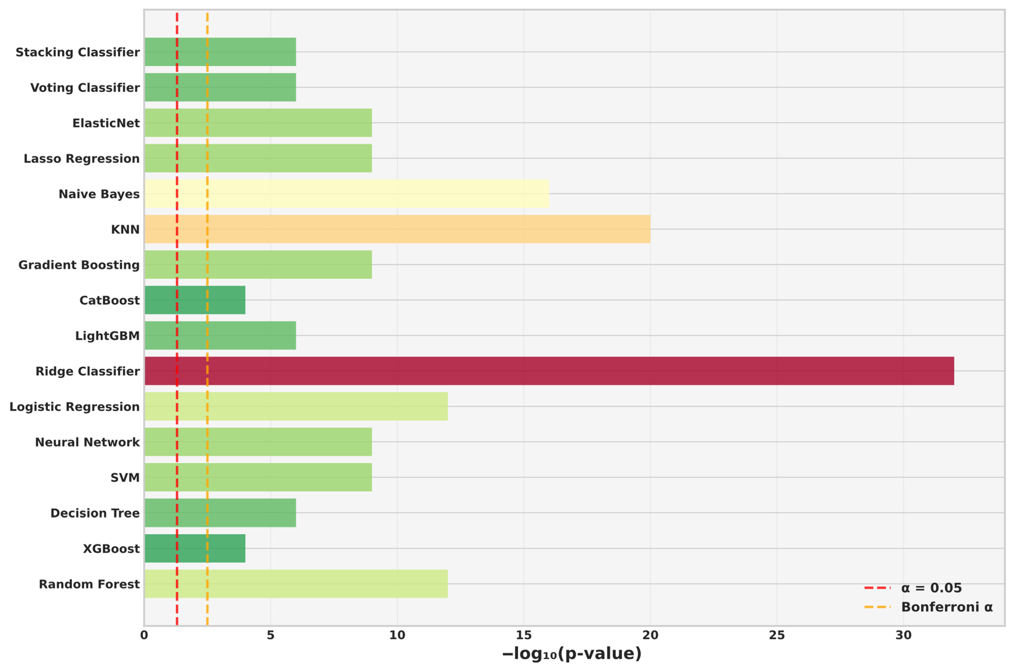 | Model | F1-Score | Accuracy | Precision | Recall | ROC AUC | F1 Overfitting Gap | Accuracy Overfitting Gap | p Value | 95% CI | Effect Size |