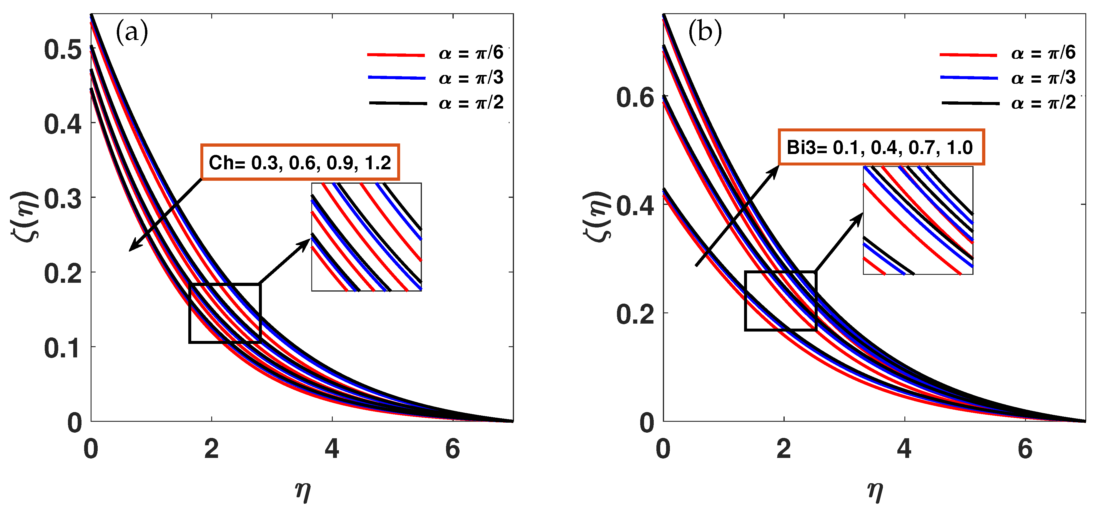 - The concentration distribution and motile concentration profile decrease with the chemical reaction parameter.