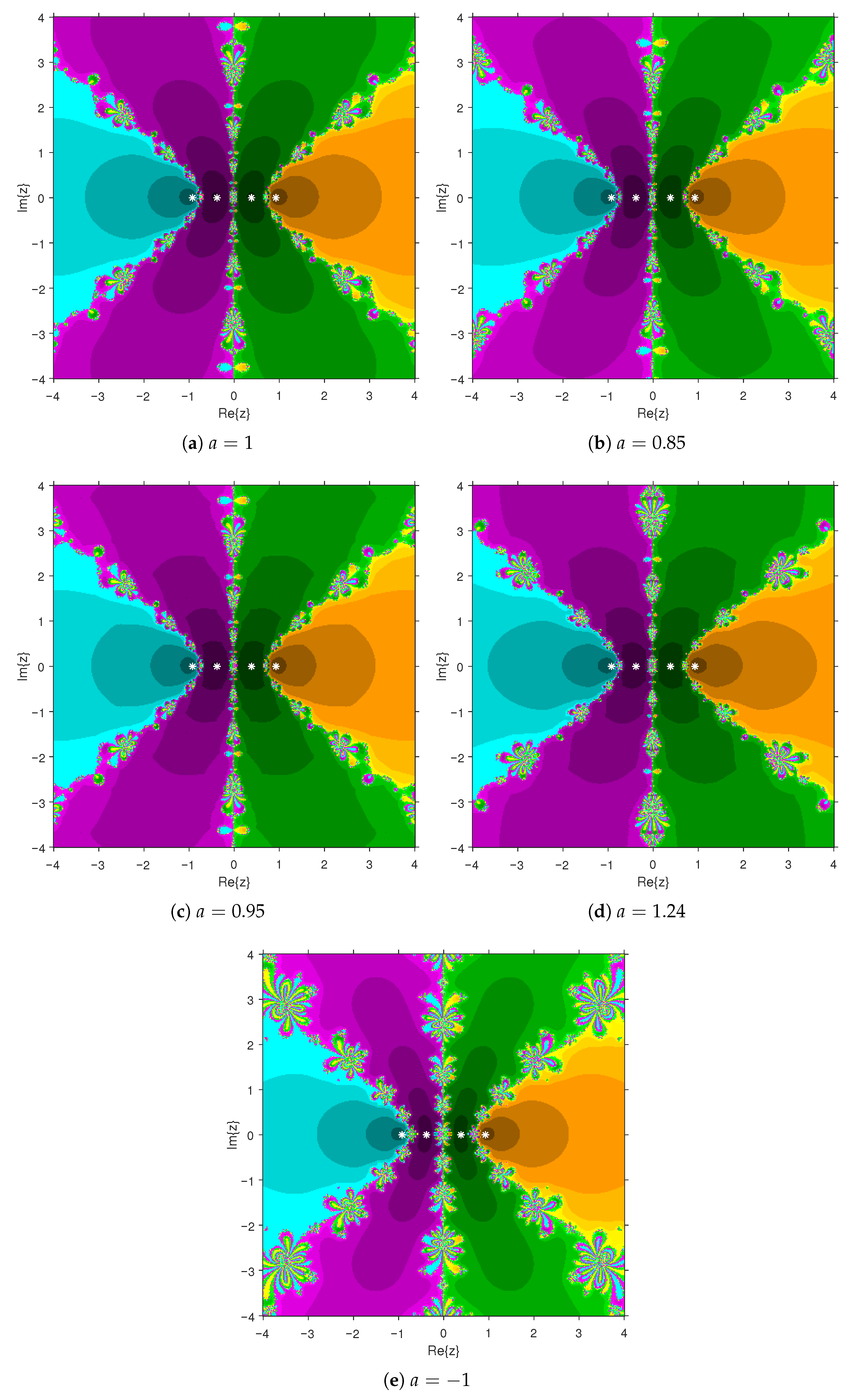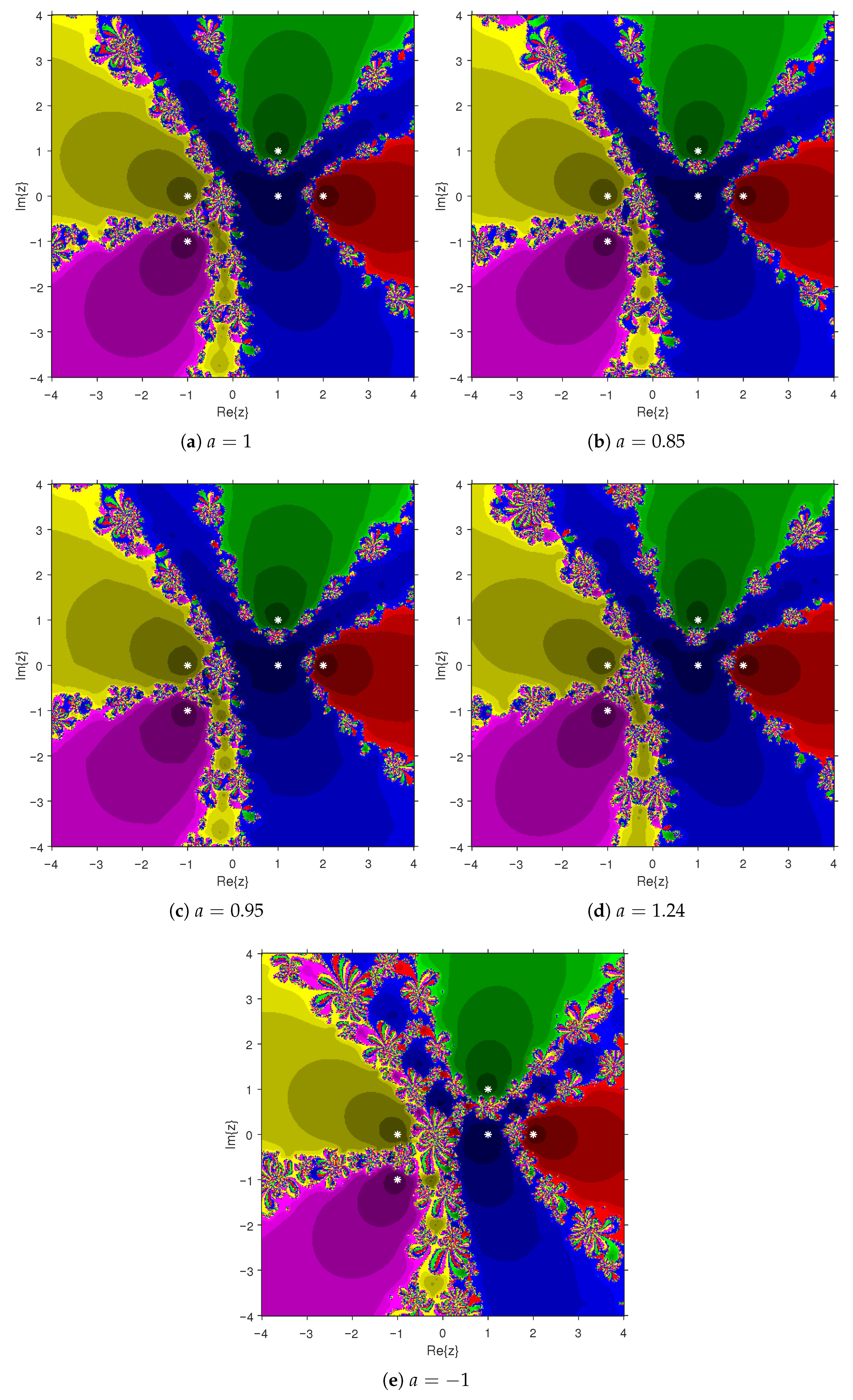 24]. Moreover, a graphical analysis of the basins of attraction provides a deeper insight into the method’s dynamic behavior, robustness, and its potential for solving complex-valued polynomial equations.