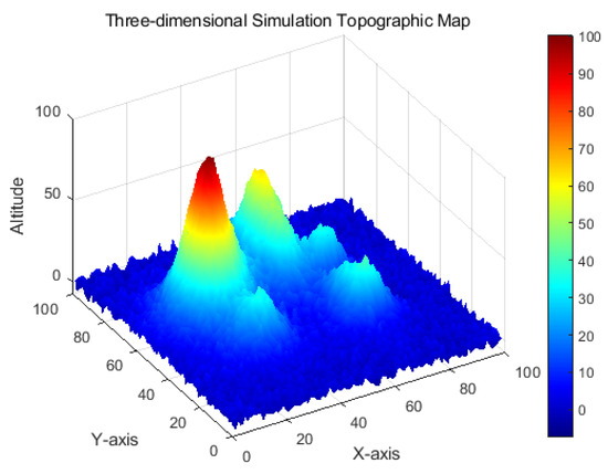 In the specific modeling process, the height of the terrain Z (x, y) is composed of multiple peaks and noise, which can be expressed as: