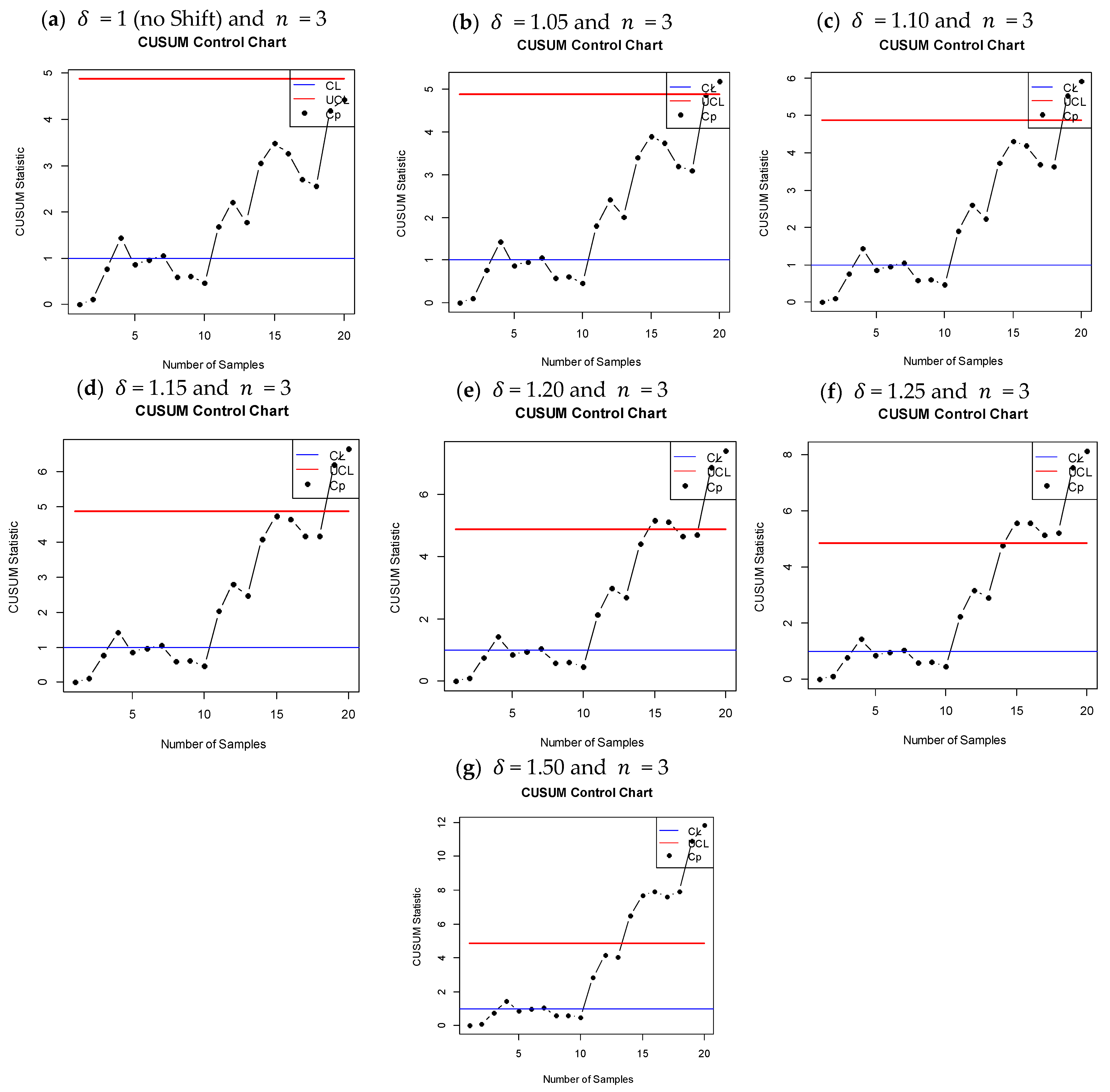 - For graphical representation, the design parameters are set as = 3, k = 0.5, and ARL0 = 370.