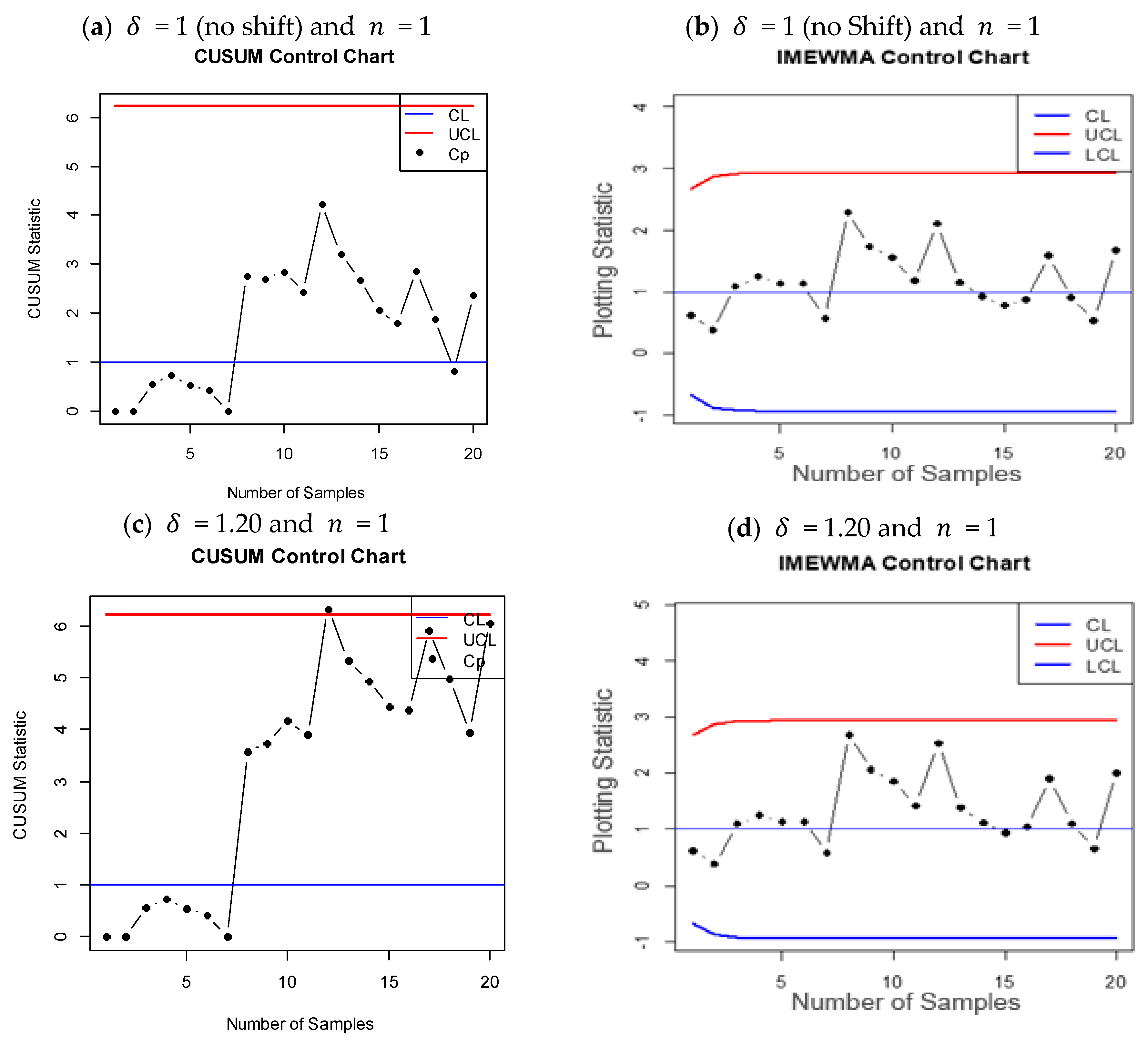 - MRL also diminishes with a larger shift size, and the smaller MRL of the IMCUSUM relative to the IMEWMA further confirms the better detection of shifts by the IMCUSUM chart. For example:- i