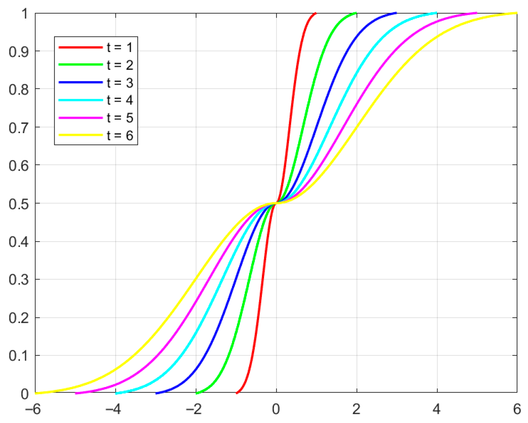 Figure 2. The linguistic transformation function Z s i 2 t + 1 for different values of t .