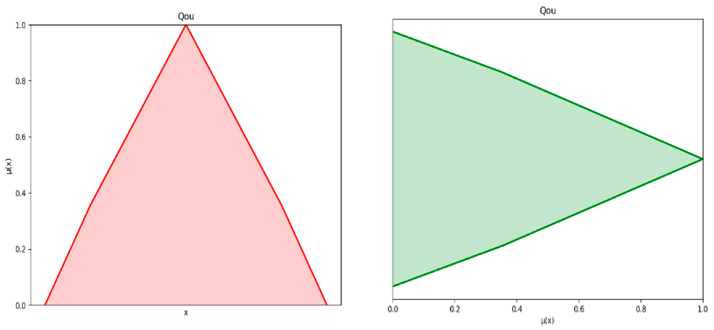 Figure 6. The function graph and the inverse function graph of pentagon Q o u .