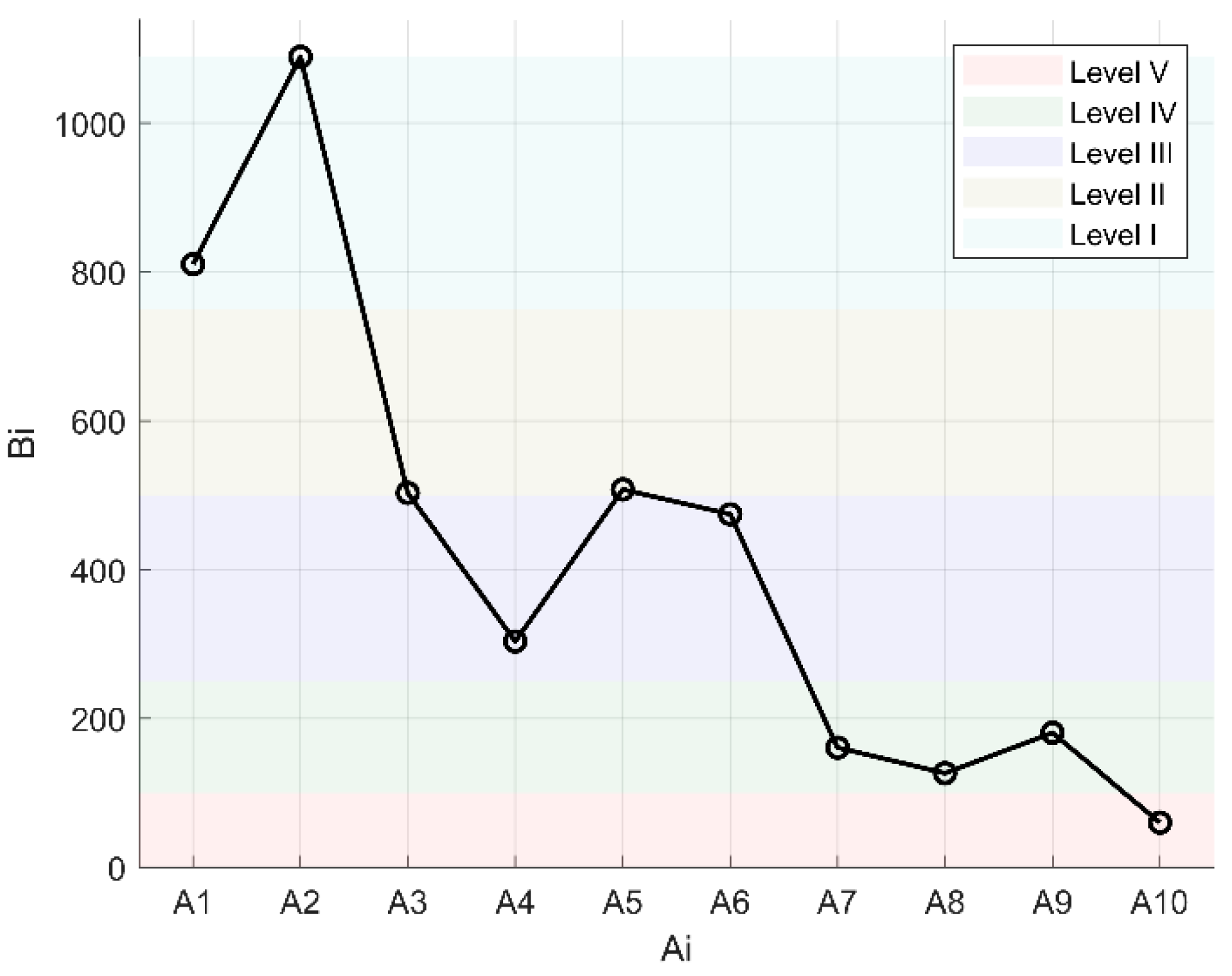 Table 7. Five levels of A i ,   i { 1 , 2 , , 10 } .