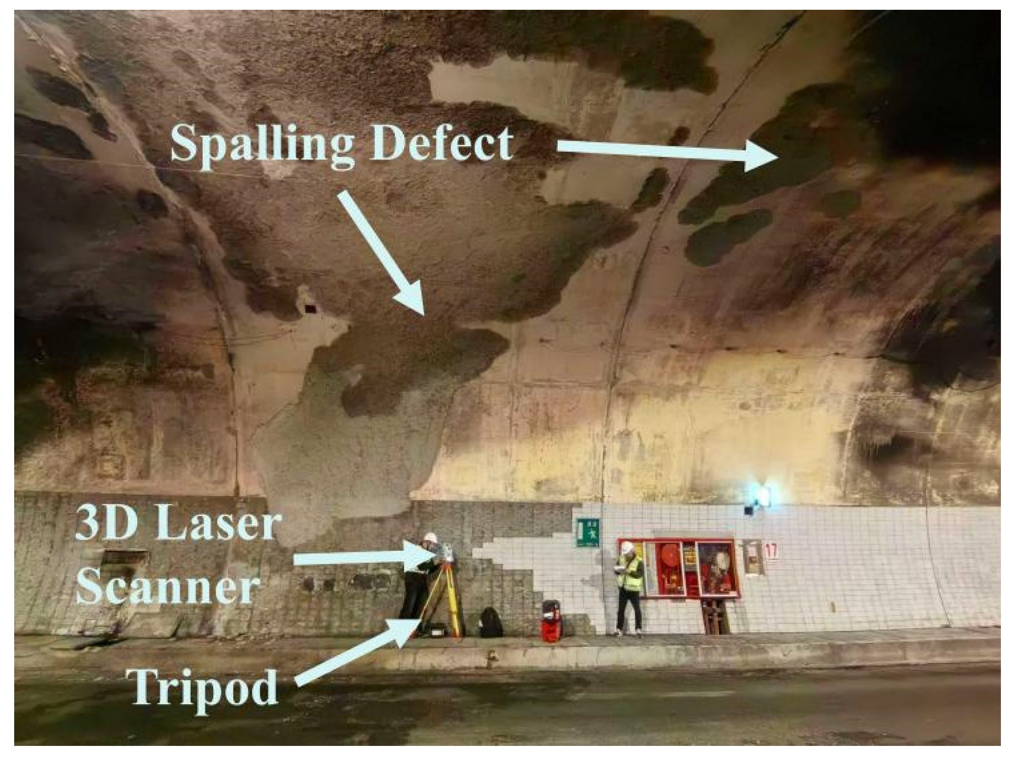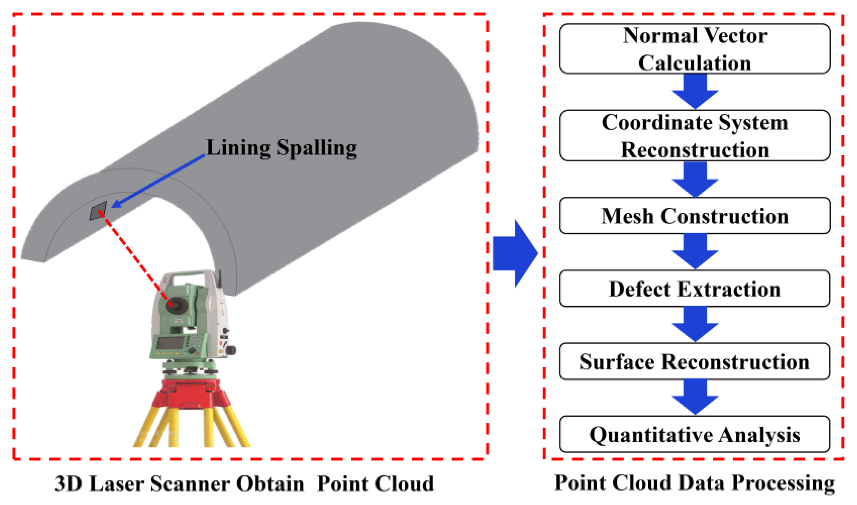 - Process: A 3D laser scanner is employed to obtain the spatial coordinates of the tunnel lining surface, generating the raw point cloud data.