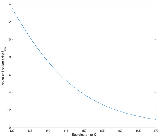 Assume that , and in the uncertain mean-reverting stock model (1), and , and for Asian options. Then the prices of Asian options are and . See Figure 5 and Figure 6.