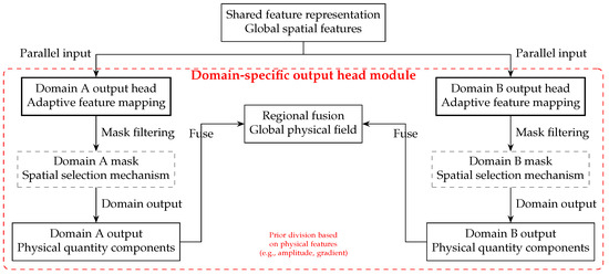 Figure 5 illustrates the core process of the domain fusion module integrating domain-specific outputs to construct a global physical field.