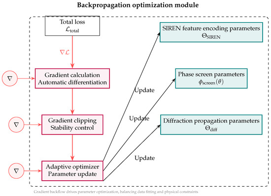 Figure 8 illustrates the overall framework of the backpropagation optimization module and the update process of learnable parameters, intuitively reflecting the core logic of the model’s iterative parameter optimization through gradient feedback.