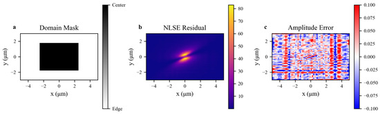 Notably, even advanced complex-valued PINN variants face this trade-off: Sinusoidal Representation Network (SIREN)-based complex models [19] uses periodic activations to inherently retain amplitude-phase coupling and ensure high-order derivative continuity—key for NLSE wavefields—but their unified network architecture lacks adaptability to spatial heterogeneity, failing to prioritize nonlinear dynamics in high-gradient core regions. Conversely, complex-valued PINNs (CV-PINNs) with domain-adapted sampling [20] improve spatial fitting for heterogeneous wavefields, yet their real–imaginary split representations (adopted for optimization simplicity) disrupt amplitude-phase integrity, leading to phase mean squared error over higher than native complex SIRENs and violating NLSE analyticity.
