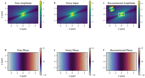 Table 6 shows that increases monotonically with noise, from () to (), reflecting a systematic degradation in amplitude reconstruction accuracy. In contrast, rises from to , growing at a faster rate, which is attributed to the high-frequency nature of phase information—noise amplifies errors through the phase unwrapping process, highlighting the high sensitivity of phase reconstruction to measurement noise.