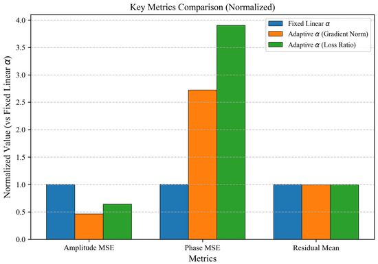 To validate the fixed linear schedule of against adaptive weighting mechanisms, we compare three strategies—fixed linear , gradient-norm adaptive , and loss-ratio adaptive —under consistent experimental conditions, isolating the impact of on performance.
