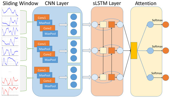 However, existing research on the sLSTM primarily focuses on its internal gating improvements, without exploring its synergistic mechanisms with CNN local features and attention-based key mechanisms. Specifically, the exponential gating of sLSTM can flexibly regulate the injection intensity of CNN features, while attention gradient feedback can guide the sLSTM to preferentially update cell states for critical temporal sequences. This coordination enables improved accuracy of CNN feature selection, forming a “local-temporal-key” hierarchical optimization loop.
