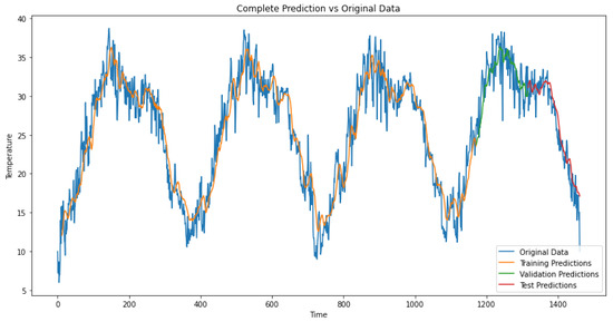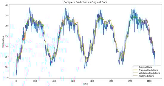 Temperature prediction has been extensively studied across diverse domains, with methodologies evolving from statistical approaches to deep learning paradigms. Early studies predominantly relied on time series models (e.g., ARIMA). Which proved effective for short-term linear predictions yet failed to capture the complex nonlinear patterns inherent in meteorological data—a limitation highlighted by recent advances in deep learning [8,10]. These data often contain symmetry (e.g., regular diurnal cycles) and asymmetry (e.g., irregular heatwave surges) that linear models struggle to represent. Machine learning techniques—including support vector machine (SVM) and random forests—introduced nonlinearity but remained reliant on manual feature engineering, which limits their adaptability to diverse environmental conditions [11]. The emergence of deep learning brought significant advancements, with recurrent neural networks (RNNs) and their variants (LSTM, GRU) becoming dominant due to their ability to model sequential dependencies [12]. LSTMs struggle with long-range dependencies, as gradient vanishing remains a persistent issue for sequences exceeding 100 time steps [13]. Hybrid models that combine convolutional neural networks (CNNs) with LSTMs have sought to address spatial limitations but lack effective mechanisms for dynamically weighting features across time scales [4]. Recent transformer-based methods have incorporated self-attention mechanisms to prioritize critical temporal features, achieving state-of-the-art performance in numerous forecasting tasks [6].