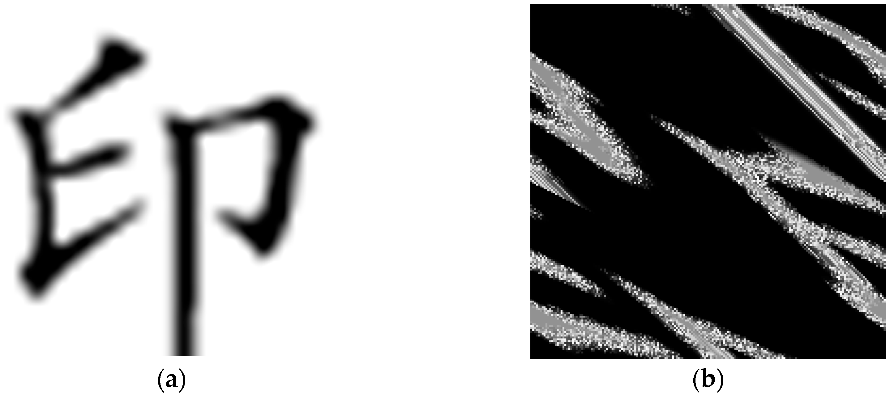 Figure 6, where (a) represents the original watermark image and (b) depicts the watermark extracted from the restored data. Both images exhibit a high degree of consistency in clarity and shape, meeting the expected performance.