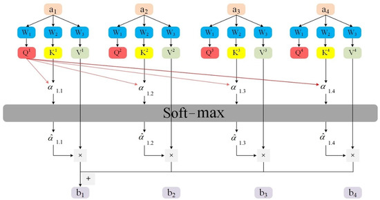 Here, a is the input vector, b is the output vector, W is the weight, Q is the query matrix, K is the key matrix, V is the value matrix, and is the dimension of the key vector.