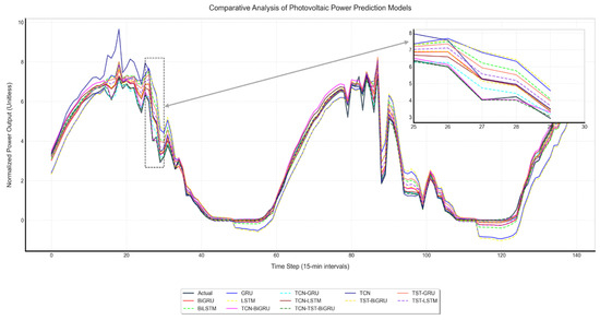 The proposed TCN-TST-BiGRU model demonstrates superior performance in photovoltaic power forecasting, yet practical implementation may encounter challenges [38]. Photovoltaic systems are subject to multiple physical factors such as extreme weather conditions and equipment aging, which can significantly increase data volatility. Moreover, the current model primarily relies on historical data for predictions without adequately addressing physical factors like photovoltaic panel degradation effects and shadow shading—critical elements that directly impact power generation efficiency.