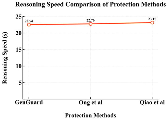 Generative speed comparison between GenGuard and classic protection methods. Results are obtained from reproduced implementation of methods in Ong et al. [] and Qiao et al. [].