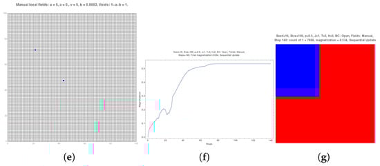 The second row of Figure 1 shows the same simulation, except that it has two local opposite fields shown in subpart (f). These two local fields enlarged the number of MC, with A being the majority as illustrated in subpart (g) with 539 + 1. The final outcome now keeps a small A domain (subpart (h)).